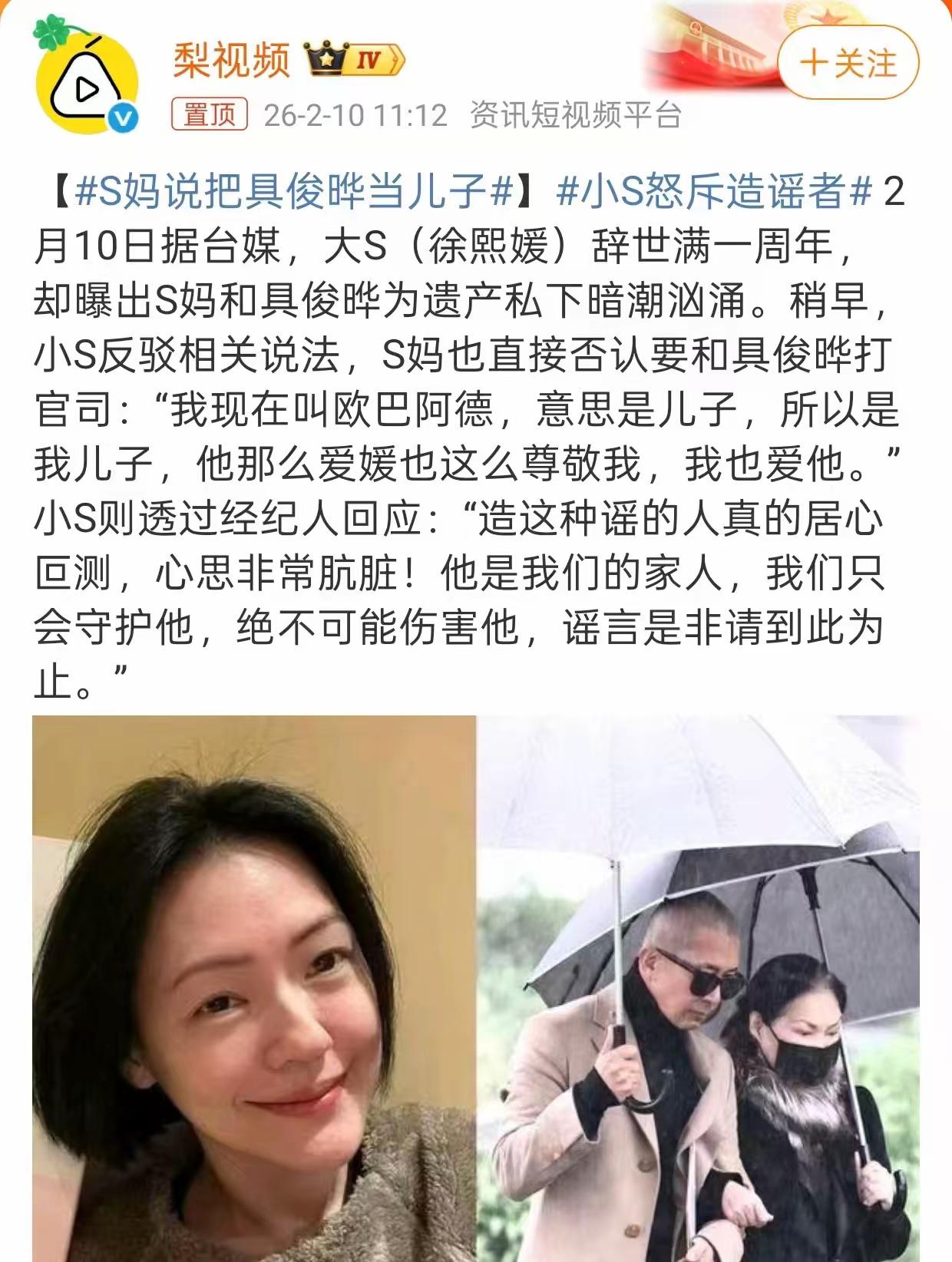 S媽否認和具俊曄爭遺產,小S全家守護姐夫,網友:利益牽扯太深了