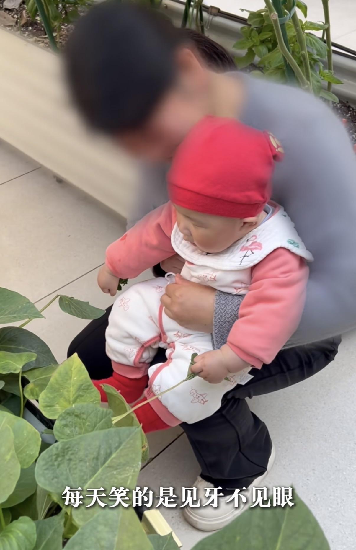 在冬天,也可以有充足的戶外時光,每天在院子裏看花草、逗小狗、曬太陽,雪寶笑得見牙不見眼。