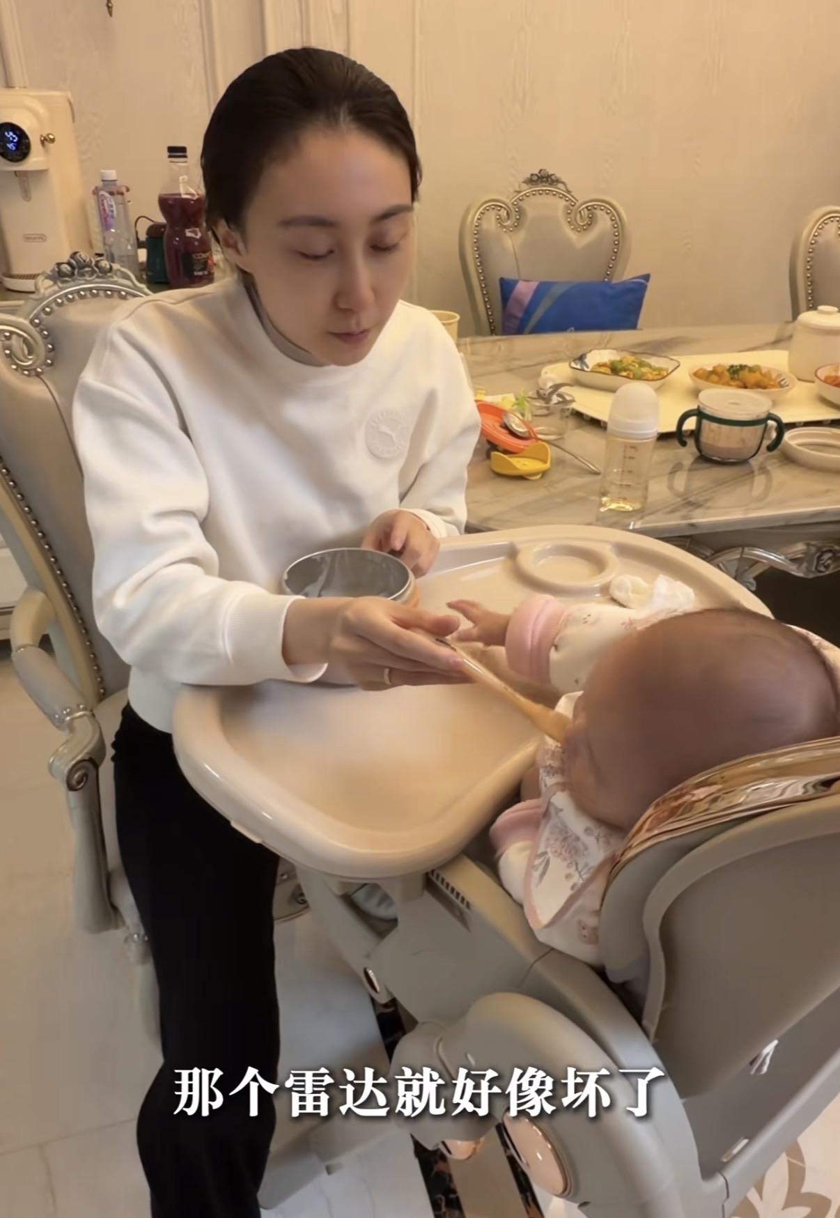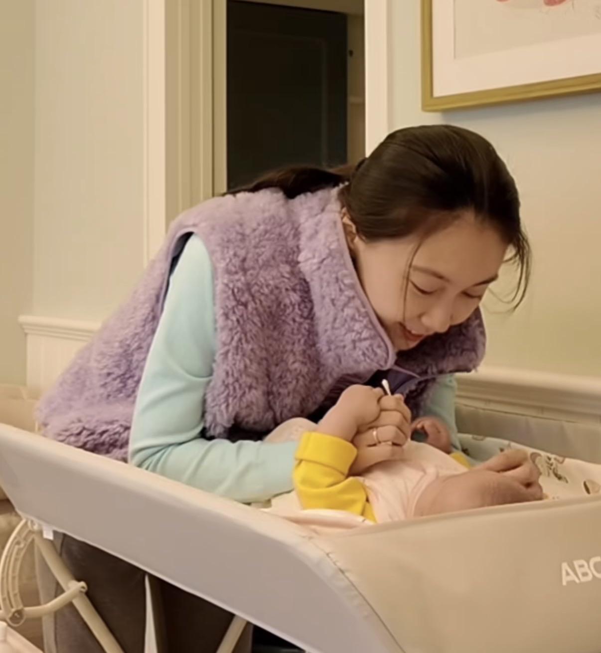 每天親自給女兒洗臉、餵奶、做操,逗女兒開心,這些生活碎片裏,藏着的都是水亦詩對雪寶的愛。