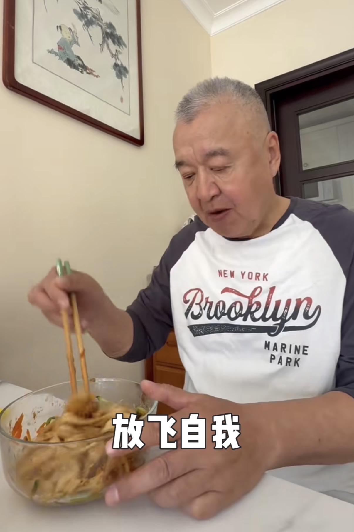 可能是因爲味道有些清淡,高父喫麪的時候又加了一勺辣醬。老爺子應該七八十歲了吧,看着精神頭很好,濃眉大眼的年輕時候一定很帥氣。