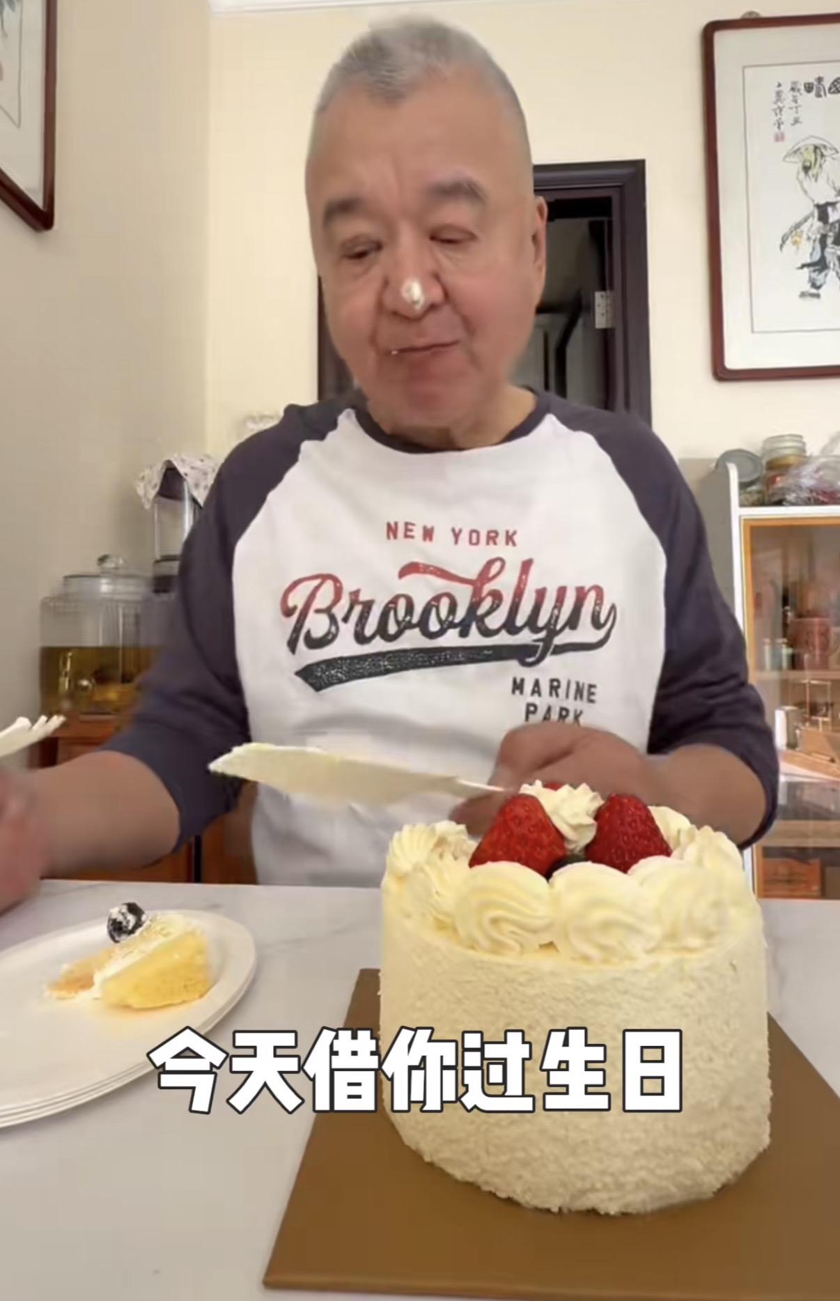 高雲翔不僅給父親準備了長壽麪,還買了一個小小的生日蛋糕,把奶油抹在父親鼻子上。雖然只有父子兩個人,但是氛圍很歡樂。