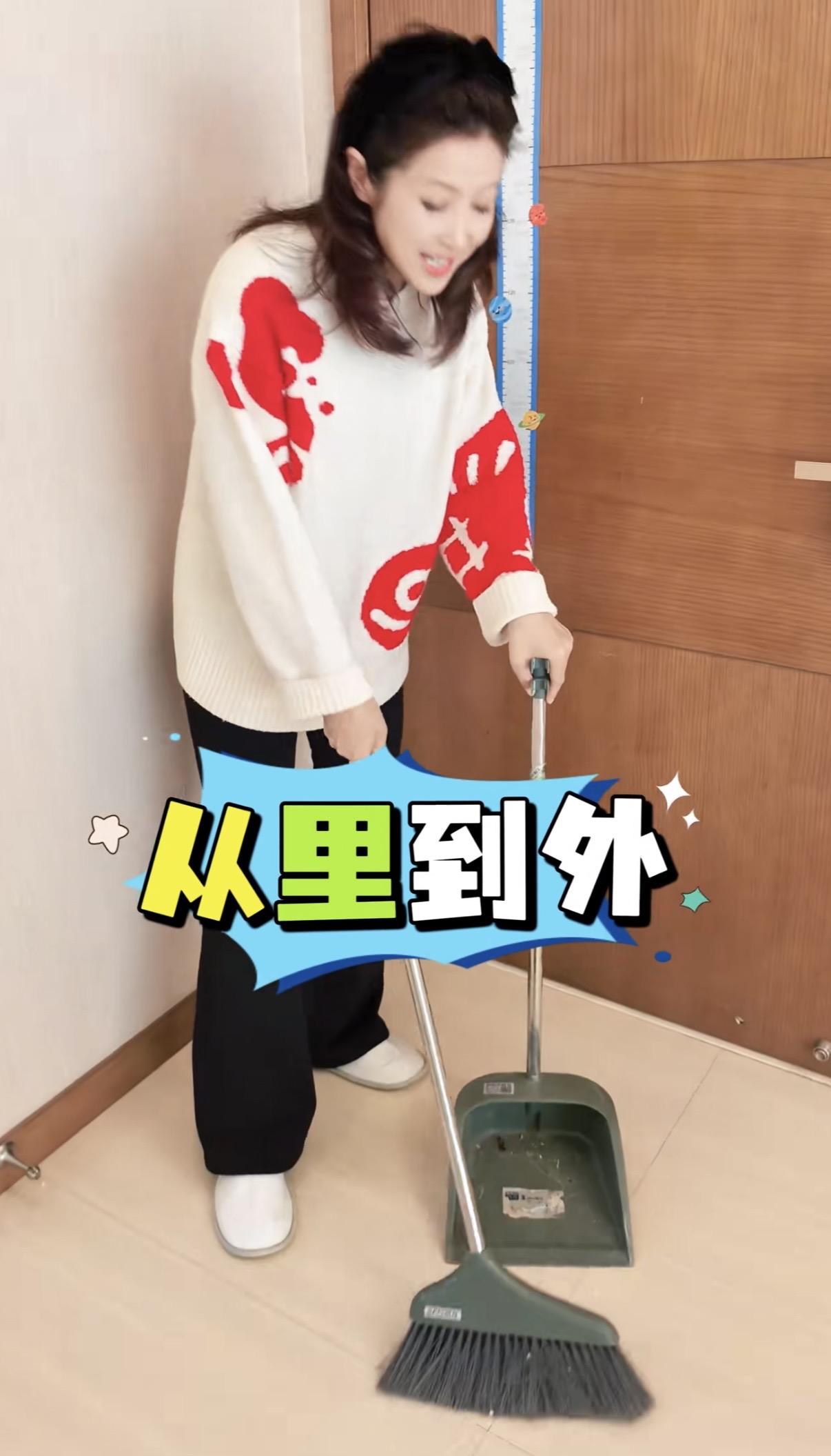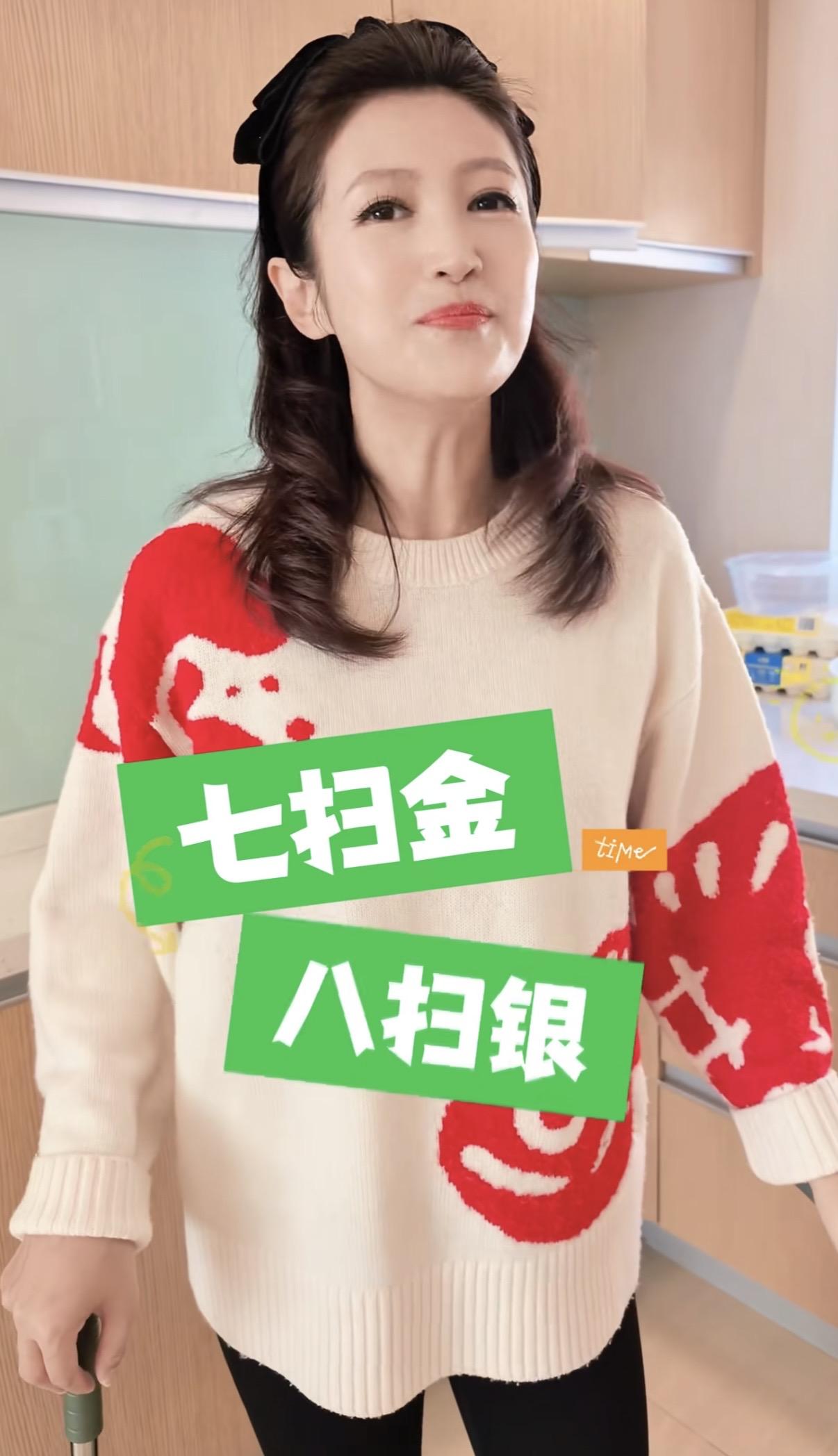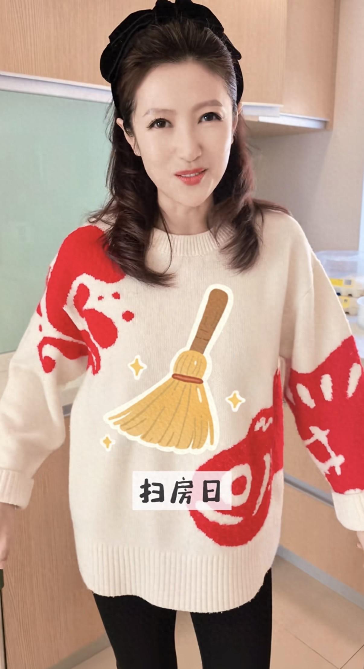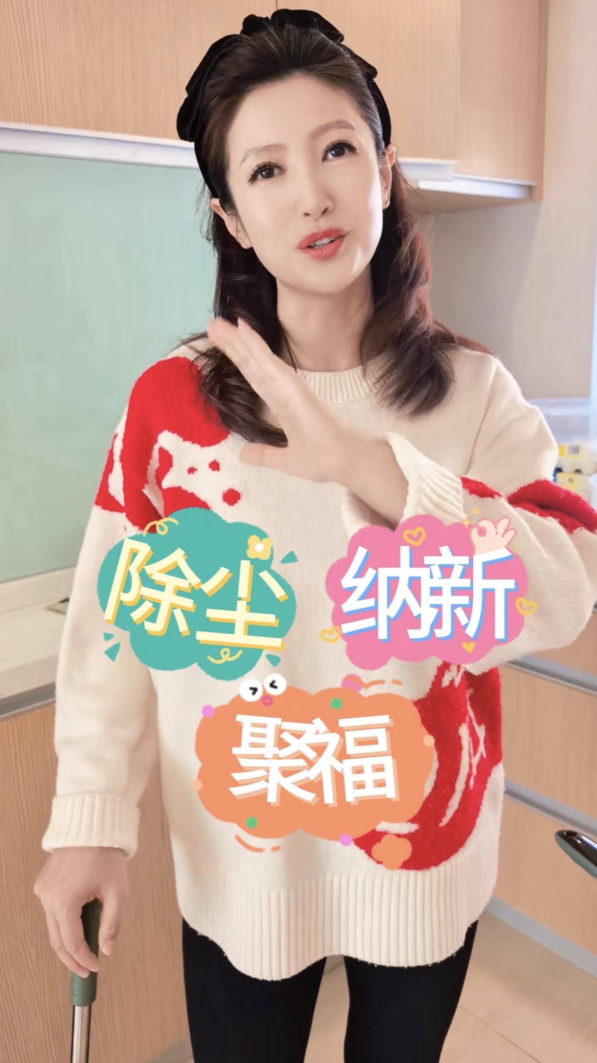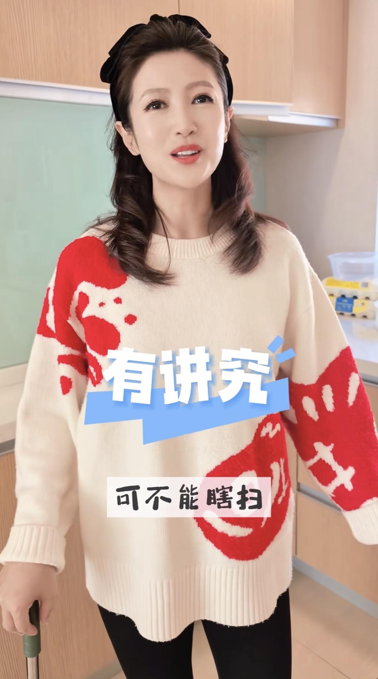 主持人春妮小年掃房子,二婚住300平復式豪宅,41歲生子不再丁克