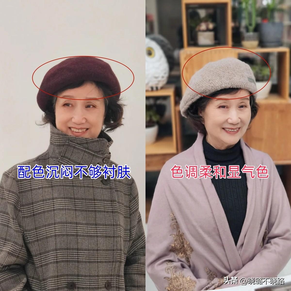 五六十歲的女人在挑選帽子的時候,還需要儘可能避免那些色調比較沉悶的系列。比如很常見的純黑、藏青等,這種帽子或許在日常生活中很常見,風格也是偏向百搭的,但實際上並不能很好襯托咱們的氣色。