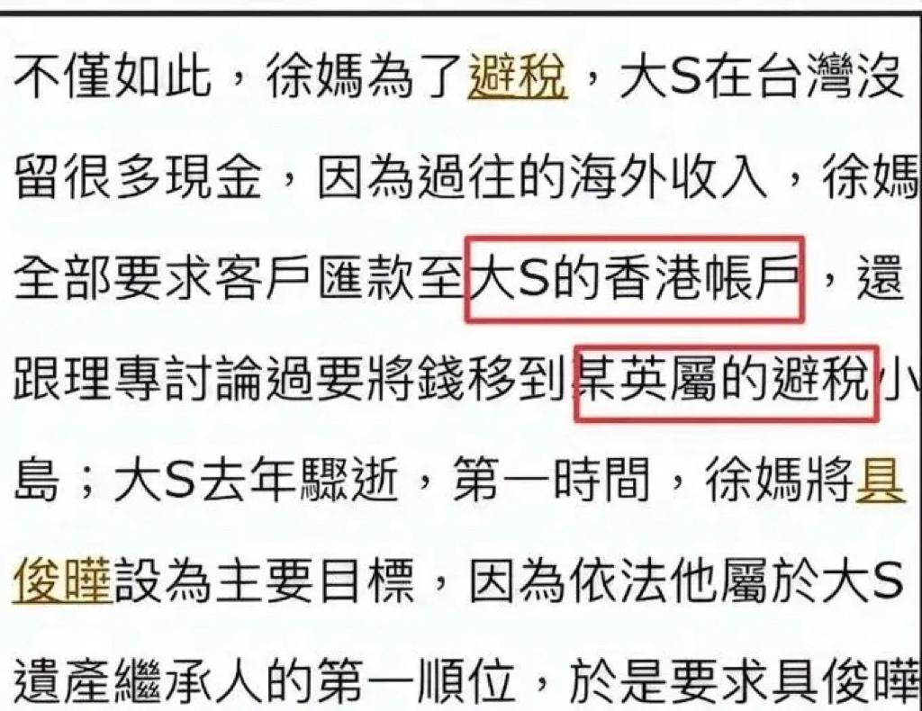 可這些都是傳言,沒有切實的證據。目前的情況就是大S遺產還沒有分割完畢,具俊曄、S家、汪家,像是三足鼎立的局面。