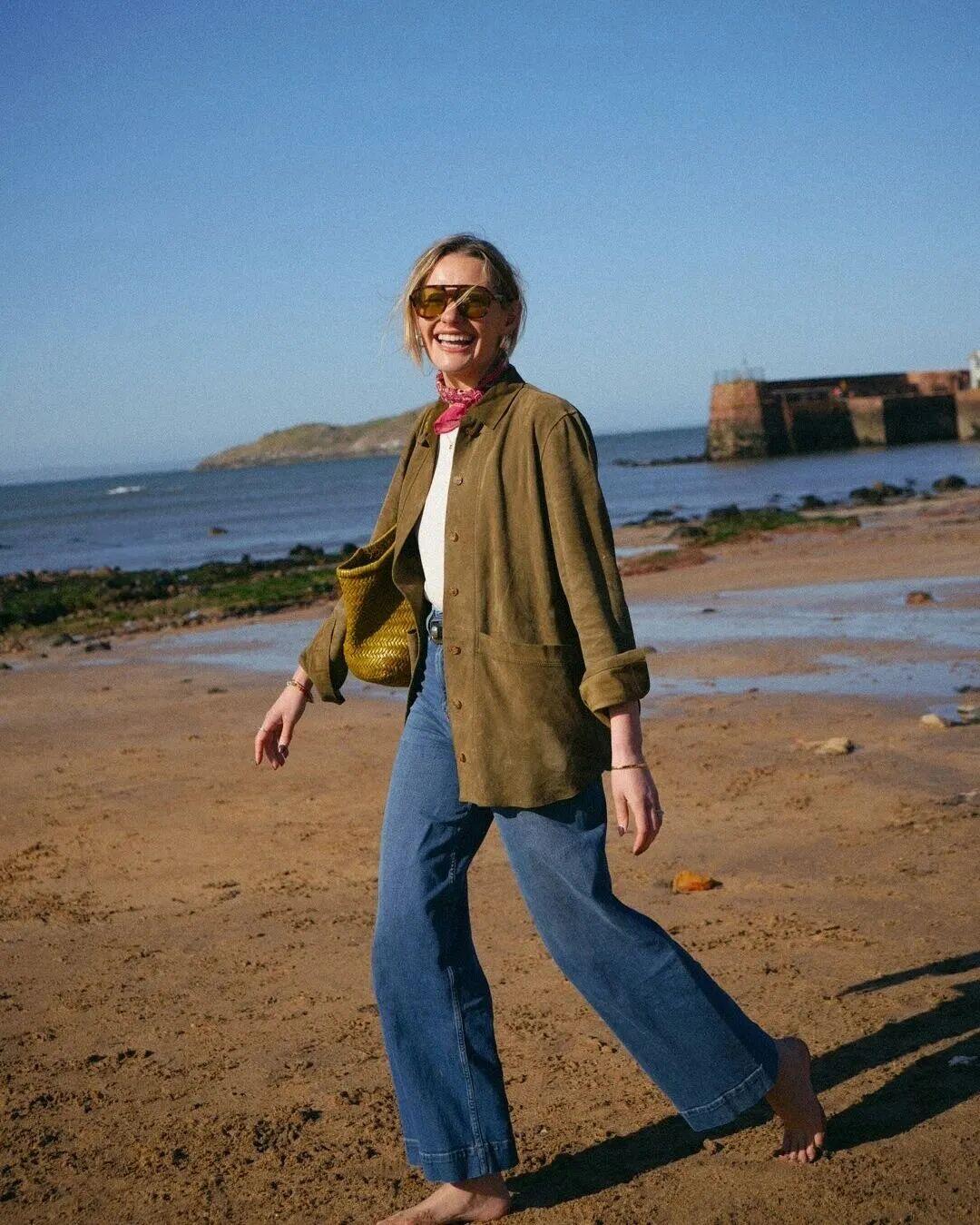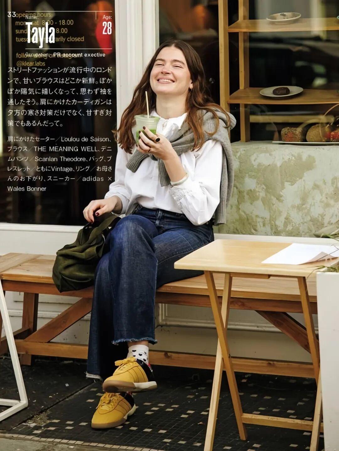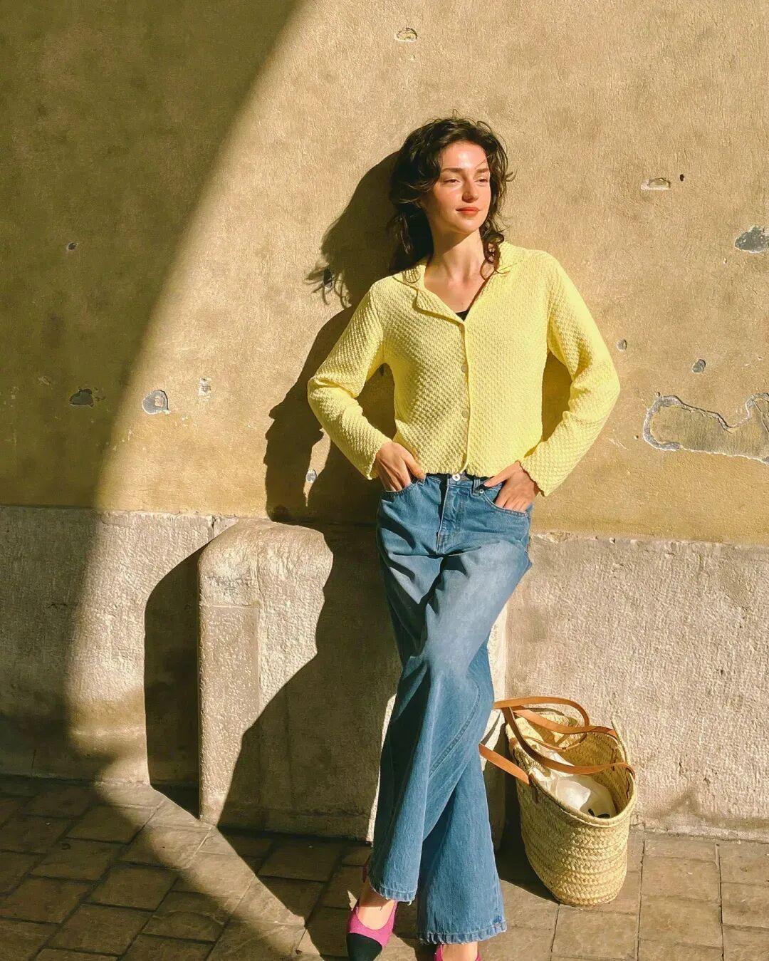 下裝簡單配條牛仔褲,就可以快速搞定“黃藍配”。 ▼
