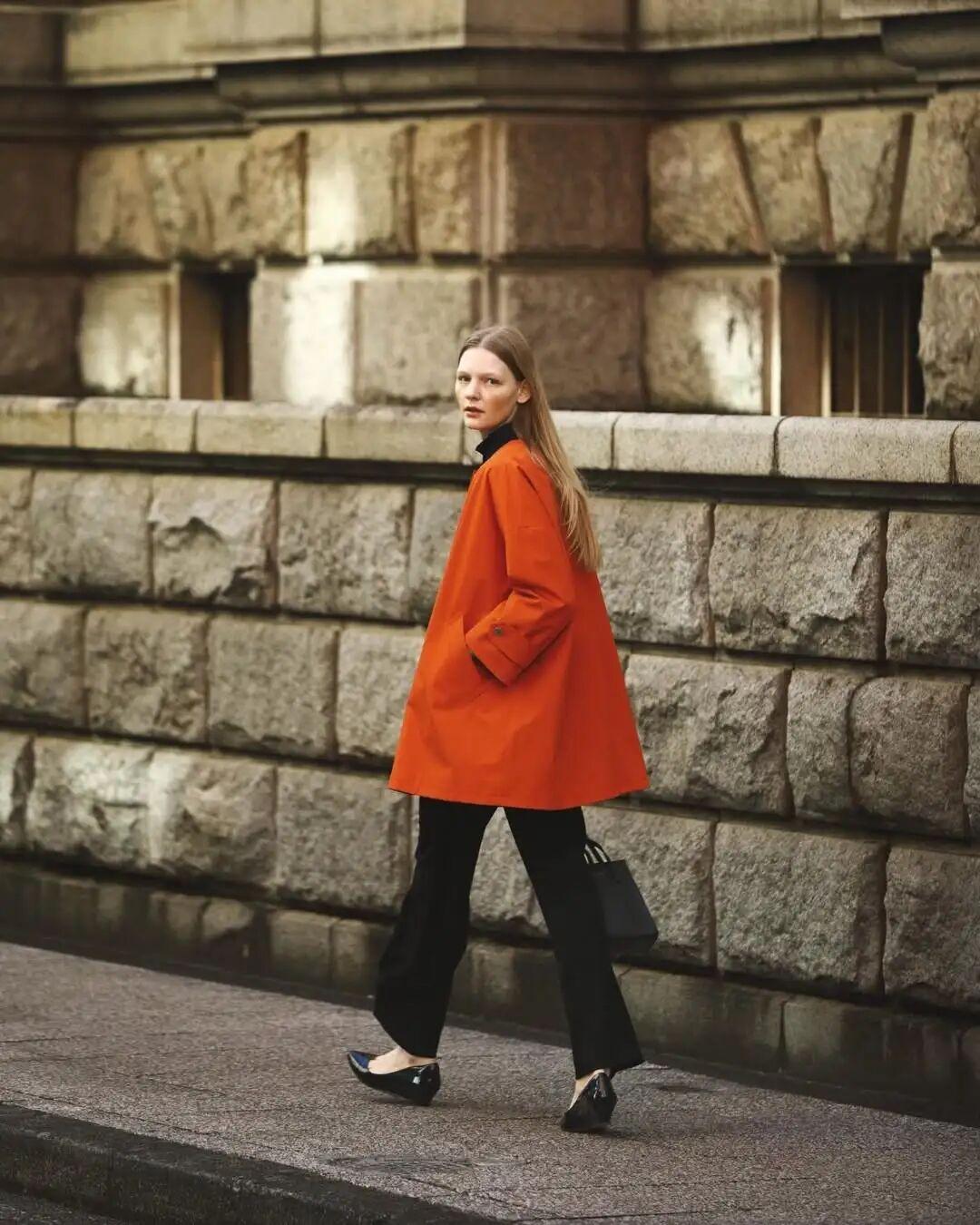 像紅色一樣,橙色也不建議大面積穿,很挑人也挑搭配。▼