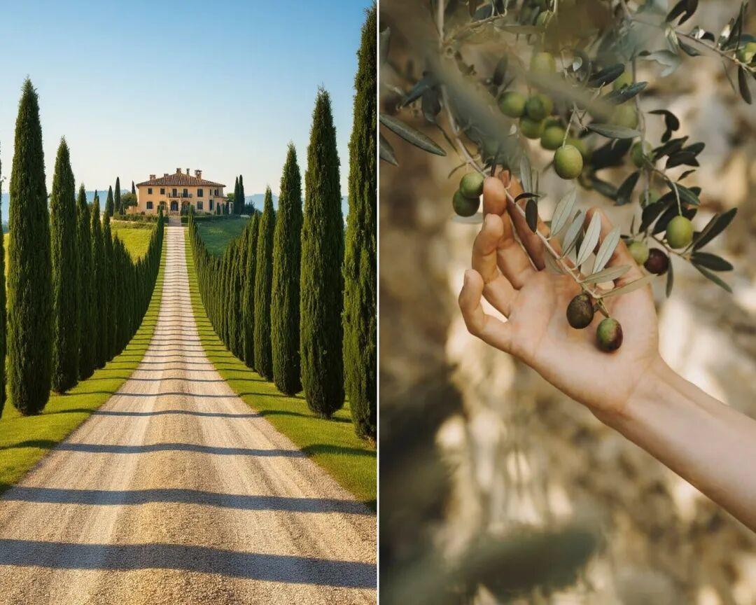 如果說紅綠是意大利的熱情,黃藍是阿馬爾菲的陽光,那綠棕,就是托斯卡納標誌性的絲柏樹和橄欖樹。▼