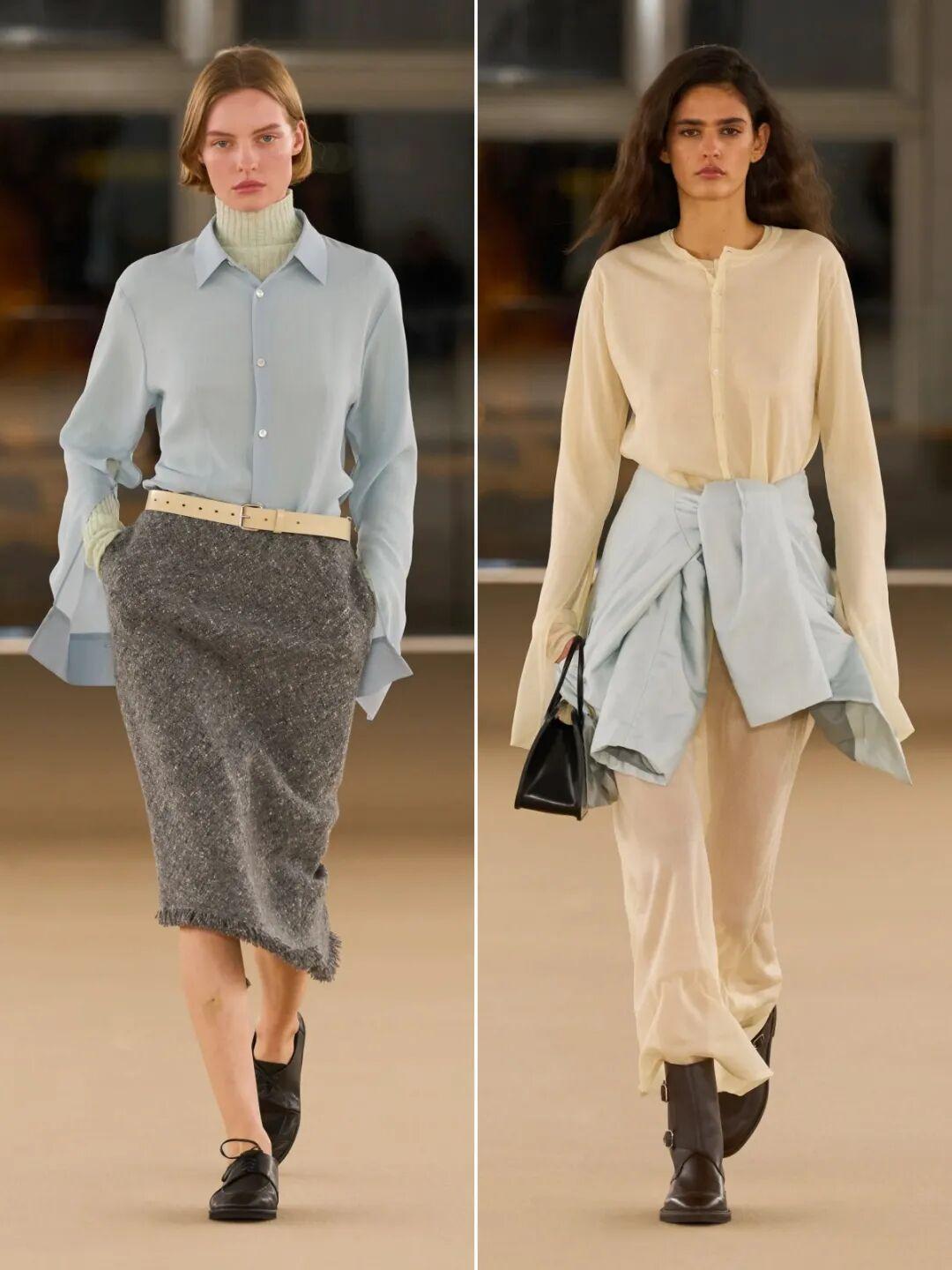 像很會玩配色的Auralee,就把黃藍配帶到了2026秋冬大秀上,主打一個“輕盈的冬天”。▼