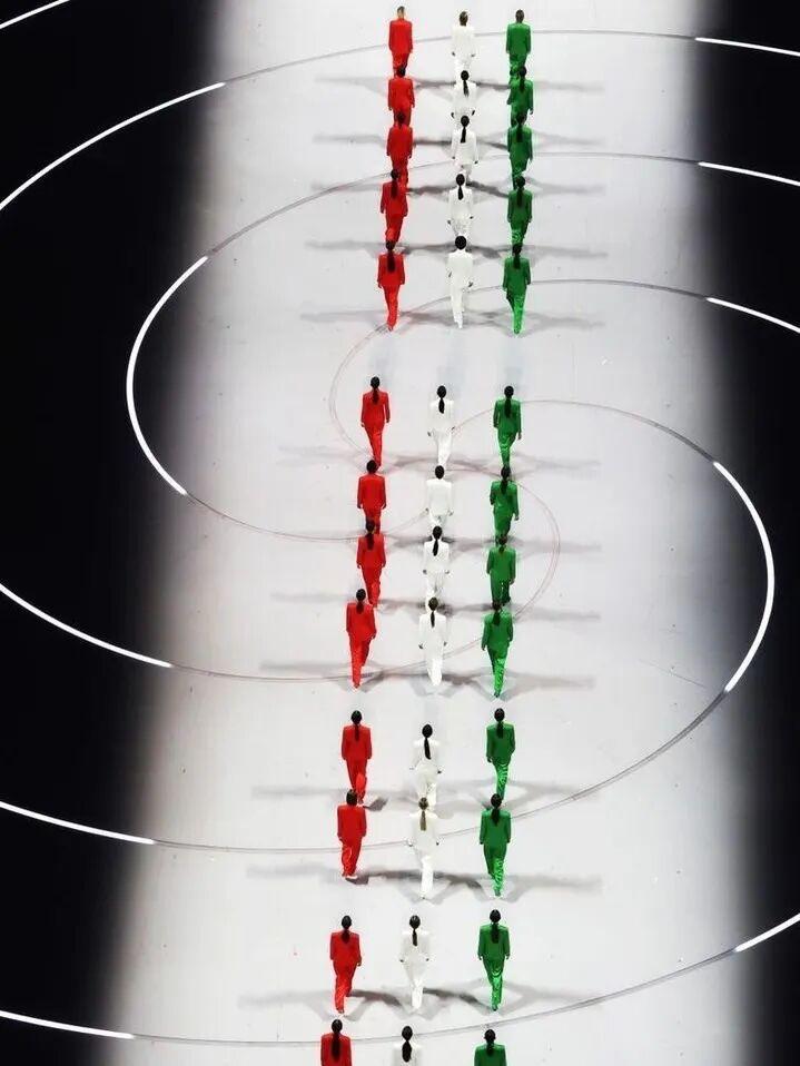 把三原色“顏料”打翻,將繽紛的“調色盤”搬到開幕式的創意,還挺“意式”的,像一場色彩和藝術的狂歡!▼