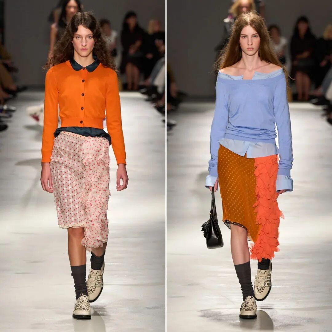 連很多意大利的時裝設計師也很偏愛這組配色,就拿2026年春夏大秀來說,好幾個大牌都不約而同地用到了“橙+黑/棕”。▼