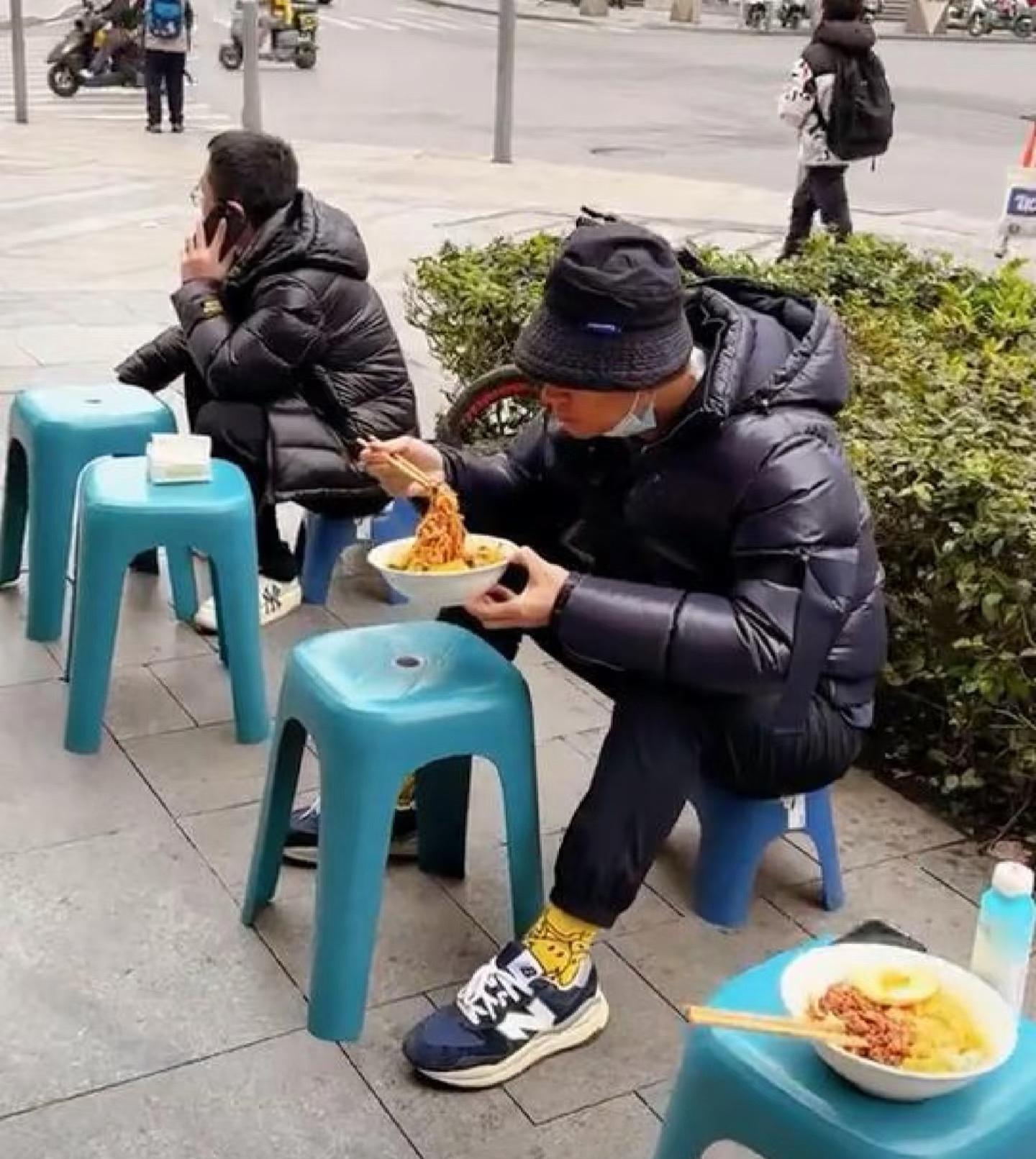 而在重慶生活許久的任重,也早已適應了這裏的生活。他經常一個人在街邊喫麪,哪怕是蹲在路邊,用塑料凳子當桌子,都能喫的津津有味。