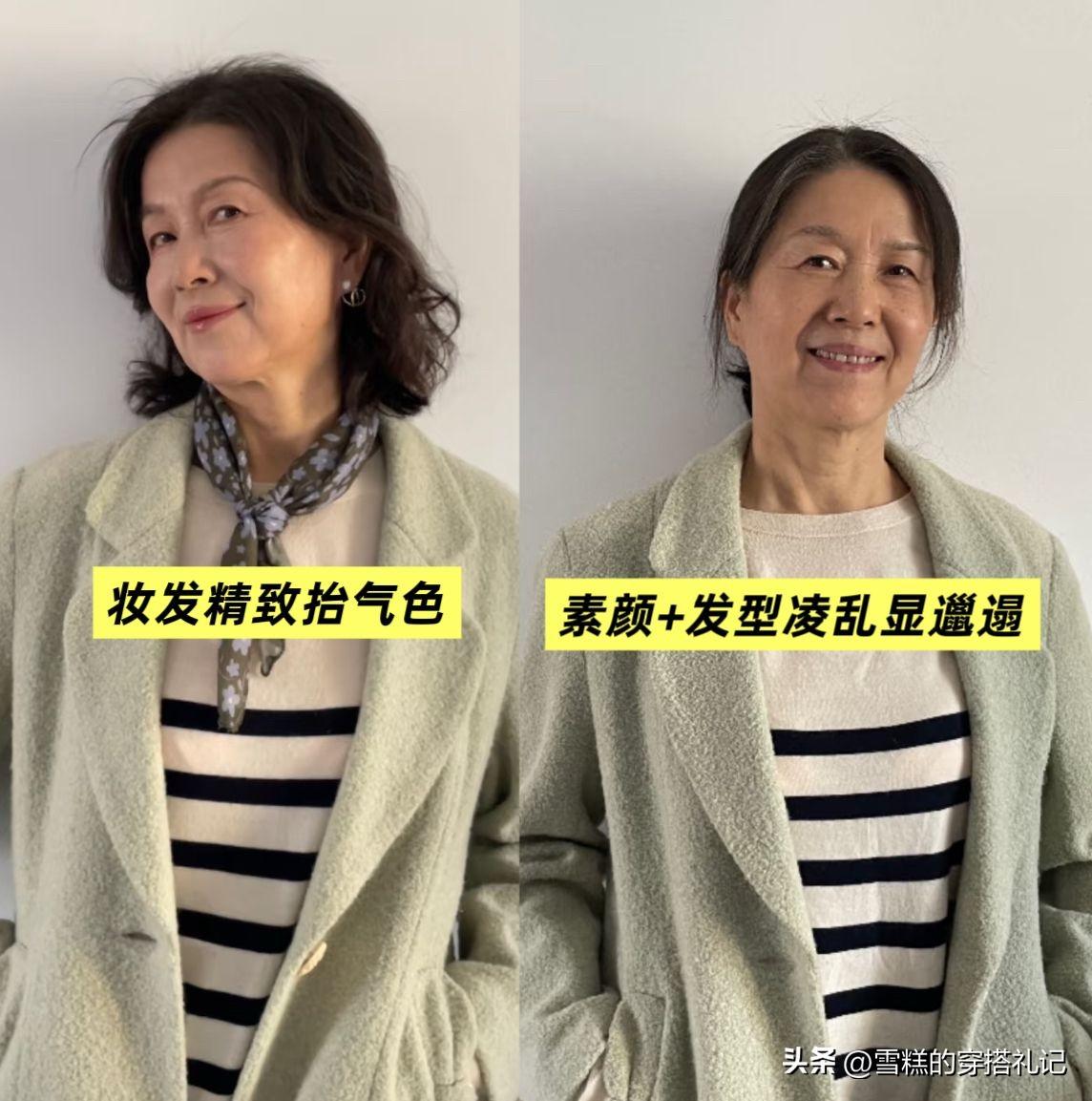 妝容和髮型也是決定形象氣質的關鍵,大齡女人穿大衣不要素面朝天,否則會秒變“油膩大媽”,也不要讓髮型太凌亂,真的更顯老。