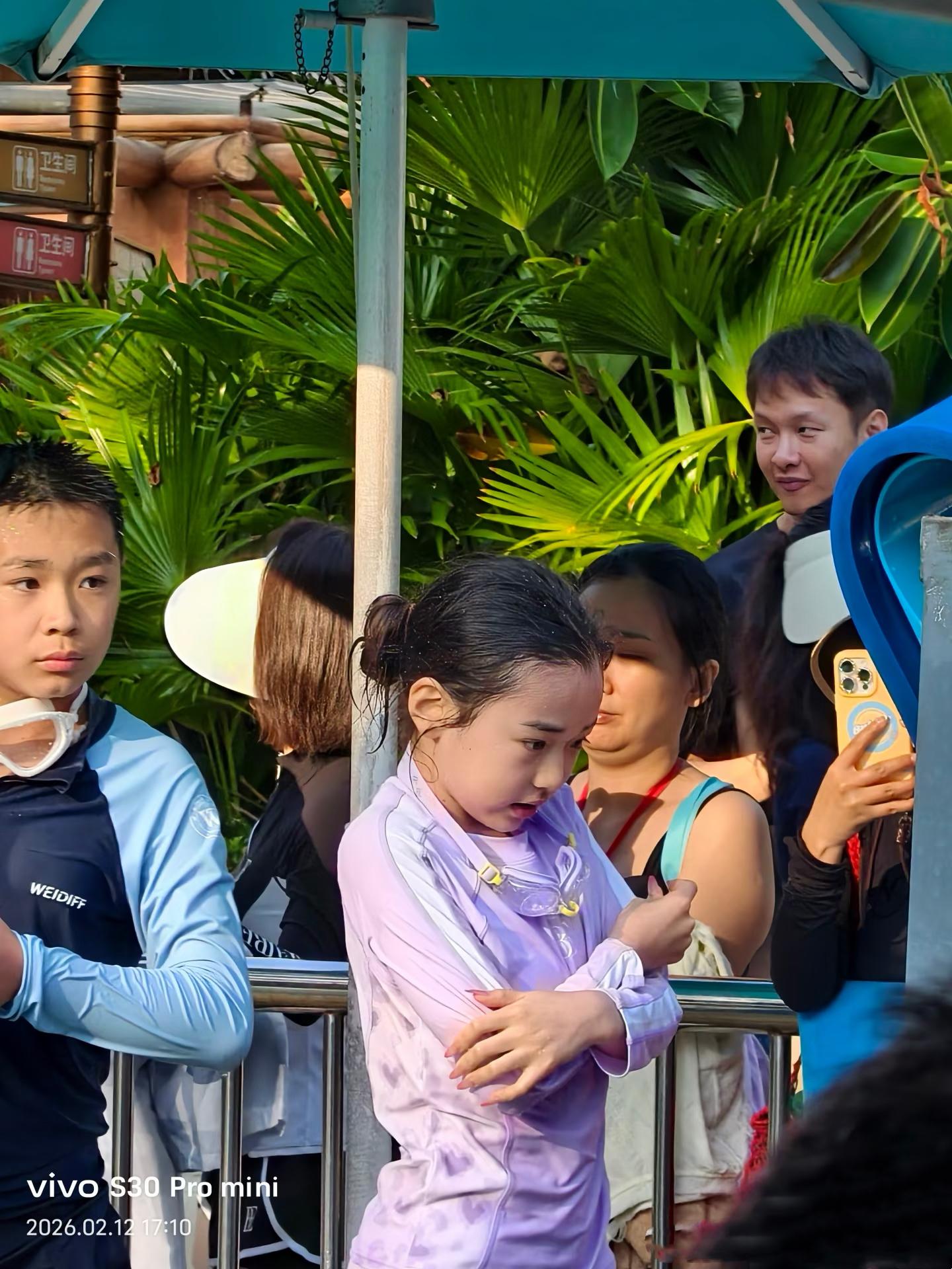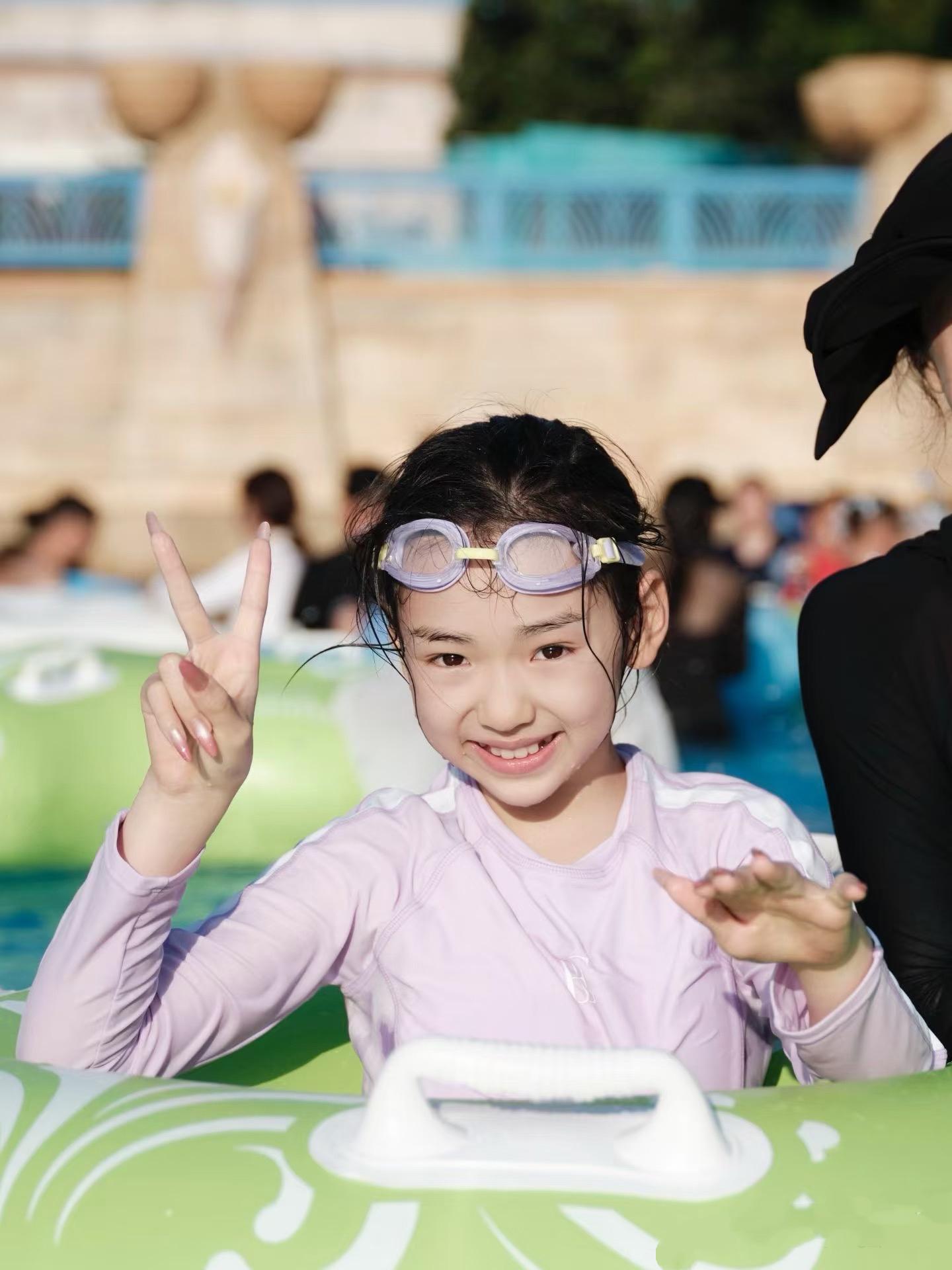 在三亞玩水的時候,小酒窩穿着淺紫色泳衣,扎着馬尾甜美又可愛,仔細觀察會發現小酒窩還做了美甲,真是個還漂亮的小姑娘。