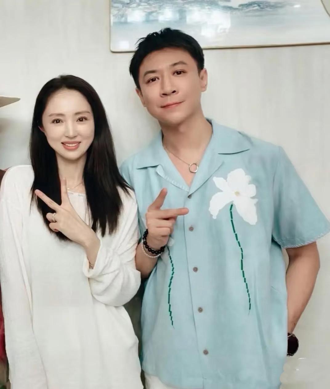 當天董璇穿一身米白套裝,留着披肩長髮、溫柔優雅。而張維伊的打扮一言難盡,一件淺藍色襯衫,像是睡衣的感覺,品味不敢恭維。