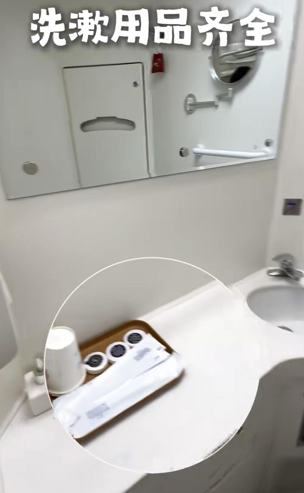 有獨立的衛生間,還有準備齊全的洗漱用品,即便是坐綠皮火車,也可以舒舒服服的。