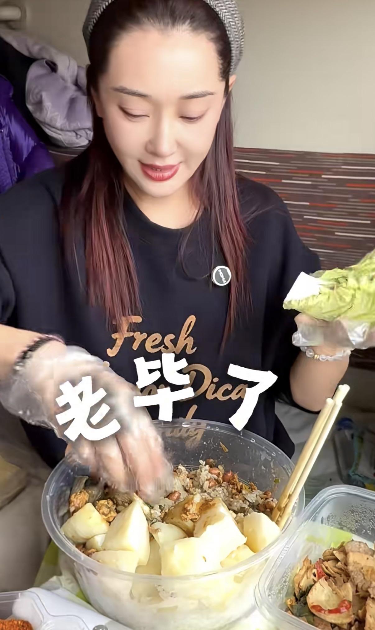 杜若溪還準備了菜包飯,她戴着一次性手套抓飯的模樣太壕氣了,不愧是瀋陽演員,一點都不矯情。