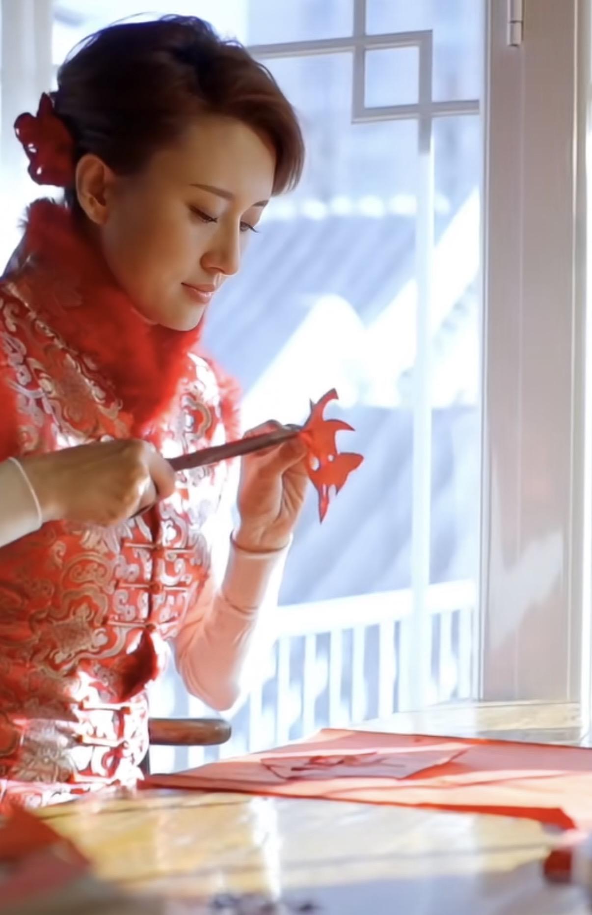 第二件事就是剪窗花,這個有點沒想到。張蕾還是手藝人,她親自用紅紙剪窗花圖案靈動有趣,細節裏透着對傳統手藝的細緻與熱愛。