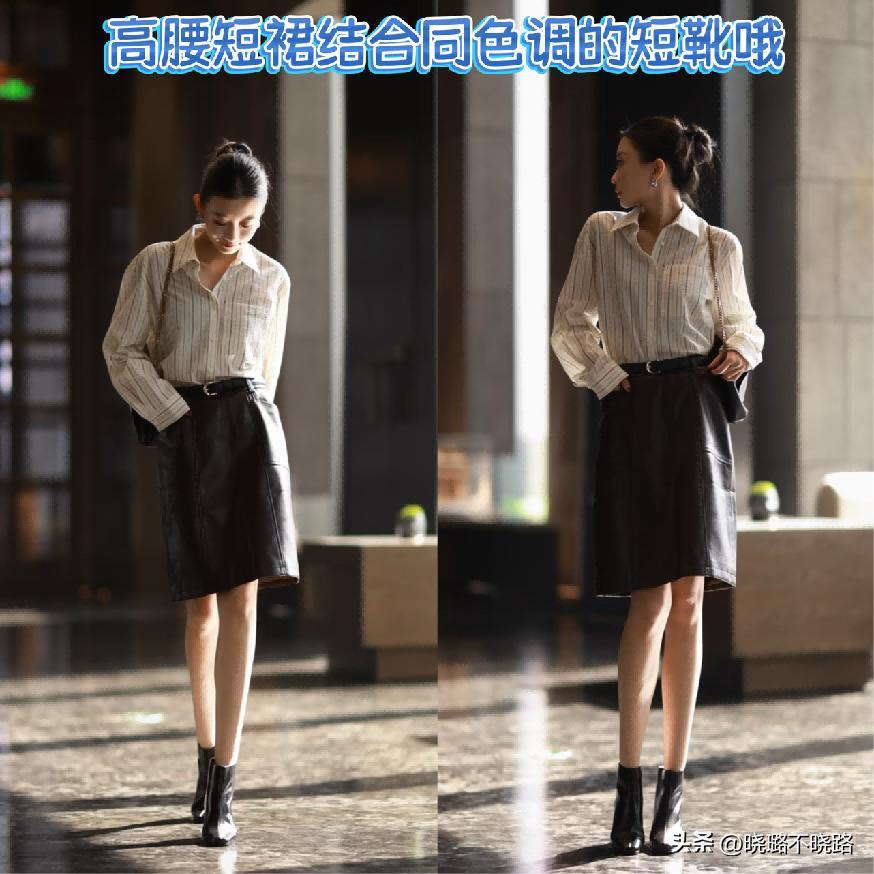 ❷ 短款的裙子搭配,結合長款無痕靴減齡好看