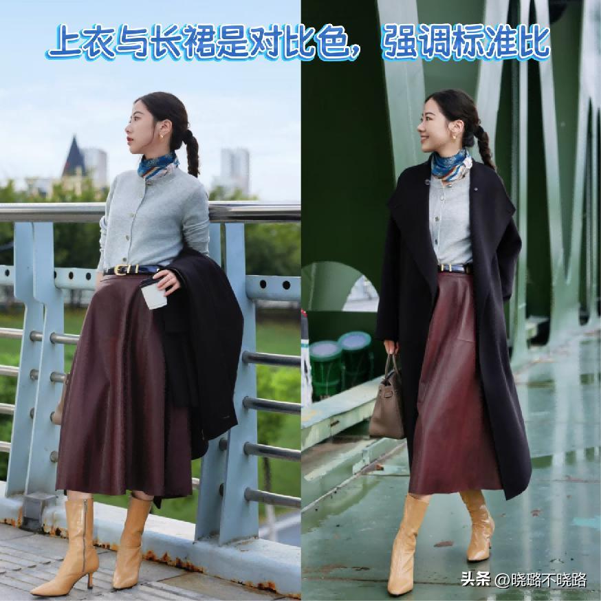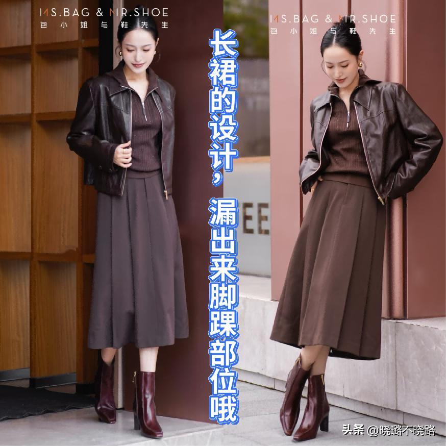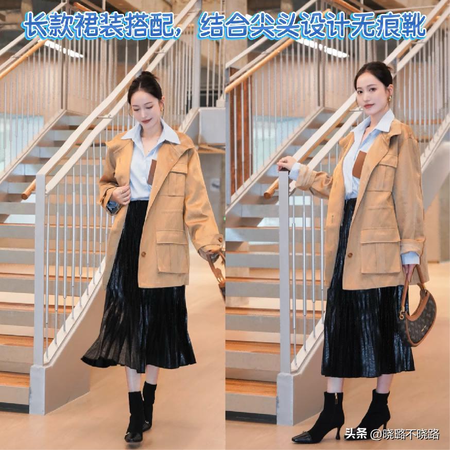 長款的裙裝搭配我們還是要優先於選擇最適合自身的類型,例如像你的腿型比較粗壯,那麼就搭配百褶裙又或者是A字裙爲主,如果是線條走向不好看,那麼煙管直筒的裙裝搭配是最爲適宜的,在這個時候所選擇的無痕靴也是屬於尖頭的的版型狀態,優化整個下半部分的顯瘦感。