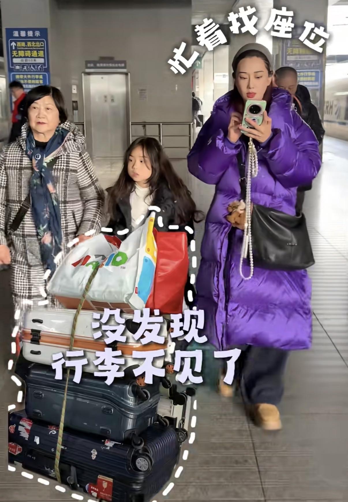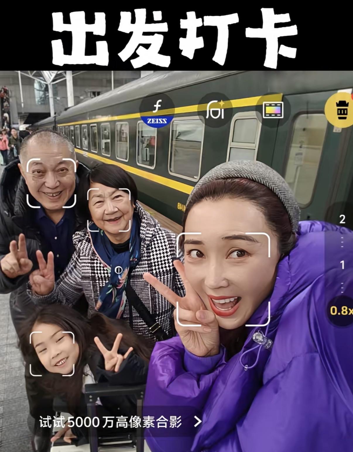 臨上火車前,一家四口還拍照留念了。杜若溪公婆都是上海人,看着特別慈祥、氣質也很好。