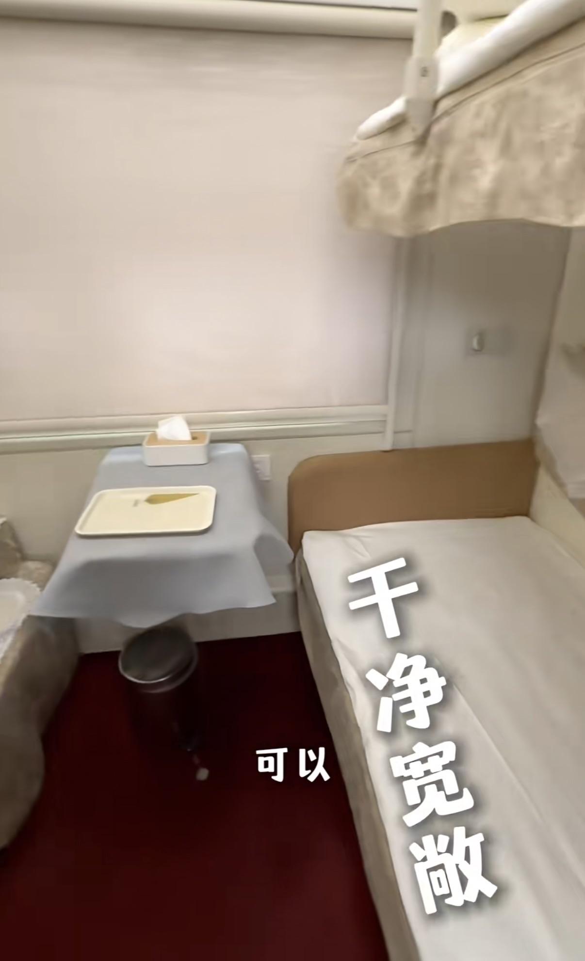 有獨立的衛生間,還有準備齊全的洗漱用品,即便是坐綠皮火車,也可以舒舒服服的。