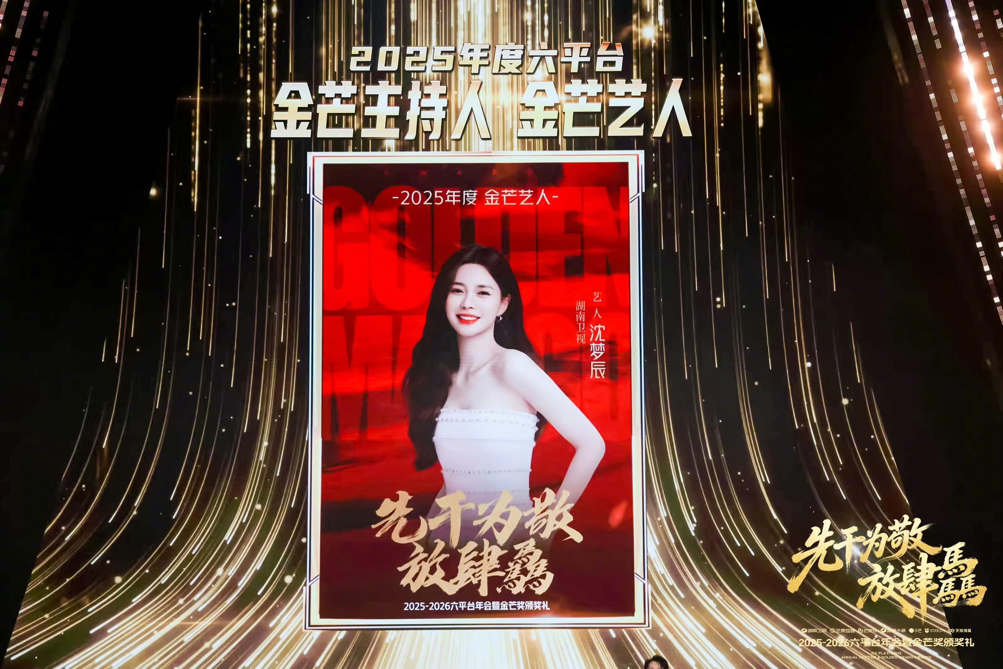 這一年,沈夢辰也是不負衆望,成爲年度六平臺金芒主持人、金芒藝人。果然是和優秀的人在一起,就會變得更優秀。