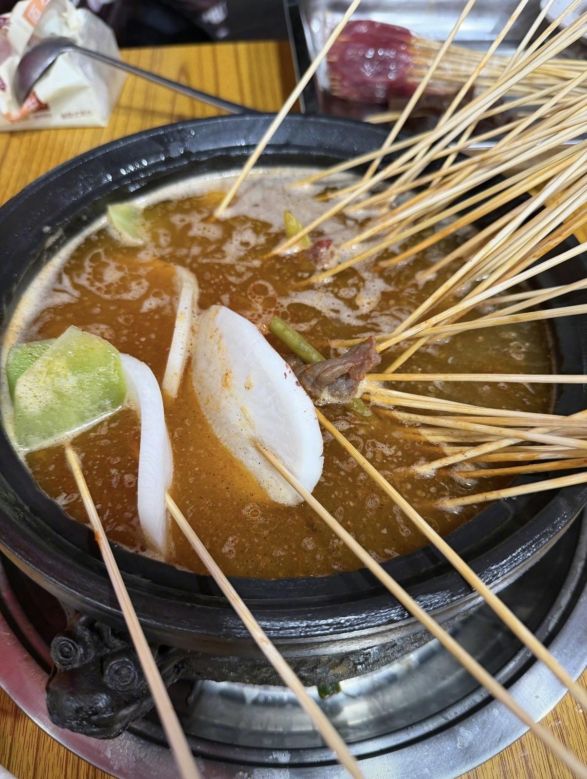 兩個人的約會並沒有選擇喫大餐,而是來到一家很有煙火氣的串串店,看樣子像是燙鍋鮮。