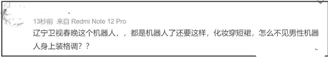 另外讓觀衆吐槽比較多的就是楊鳴和機器人的互動環節,楊鳴的眼睛一直往上飄,而機器人化濃妝穿短裙,不知道想要表達什麼意思。
