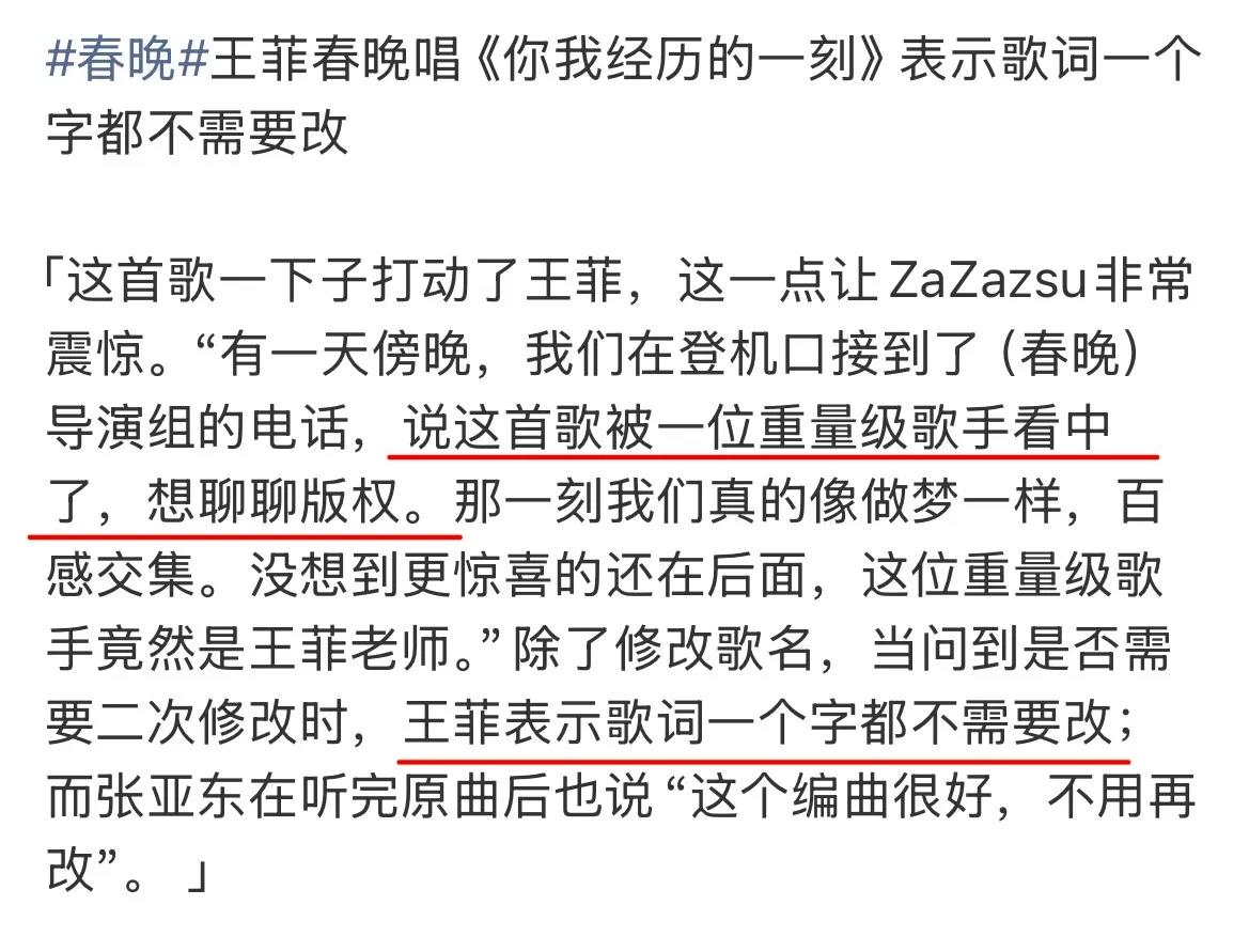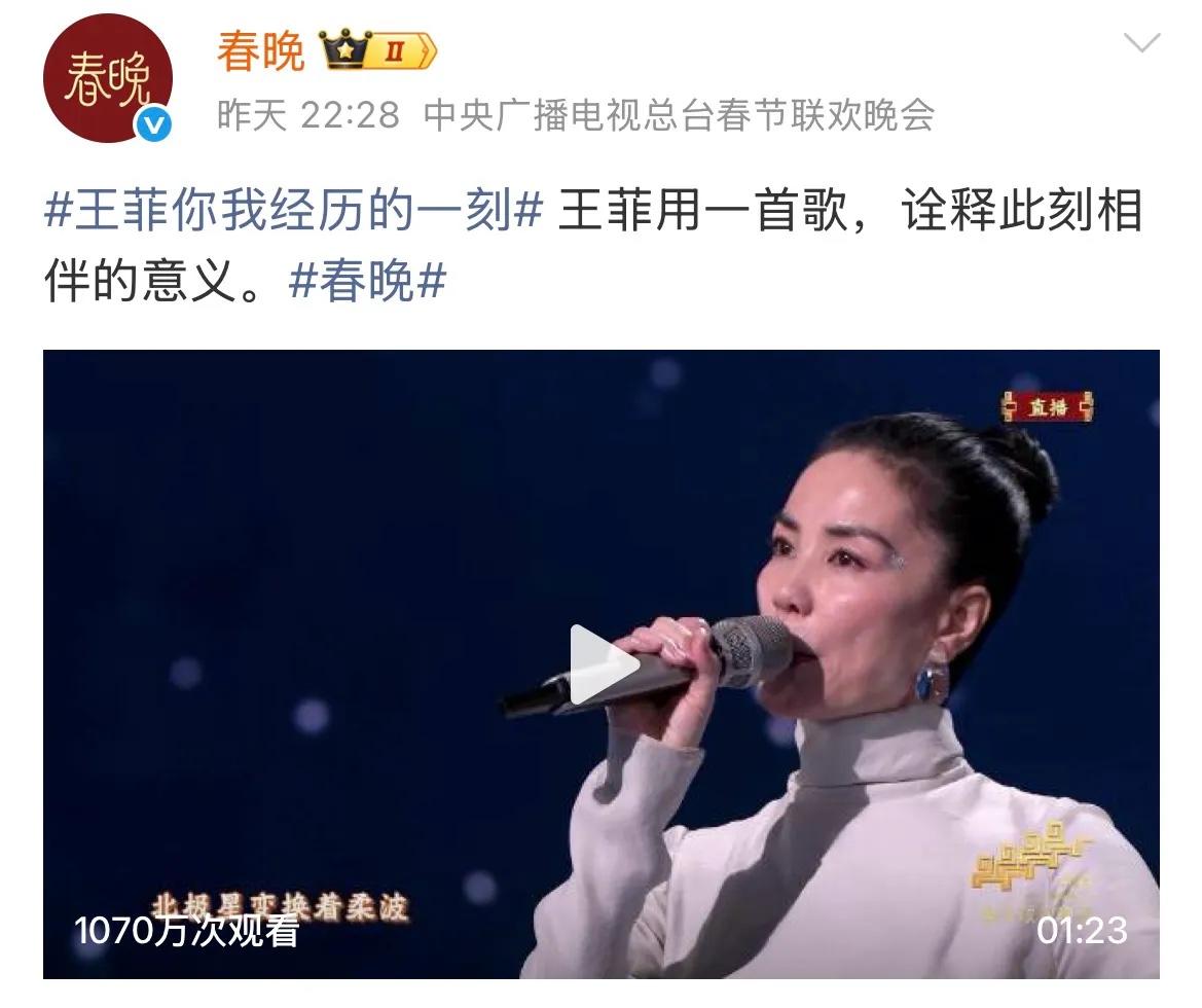 春晚舞臺上,王菲獻唱的歌曲是《你我經歷的一刻》,以細膩的心思、感嘆歲月長河,生命轉瞬即逝,最美好的不過是當下。