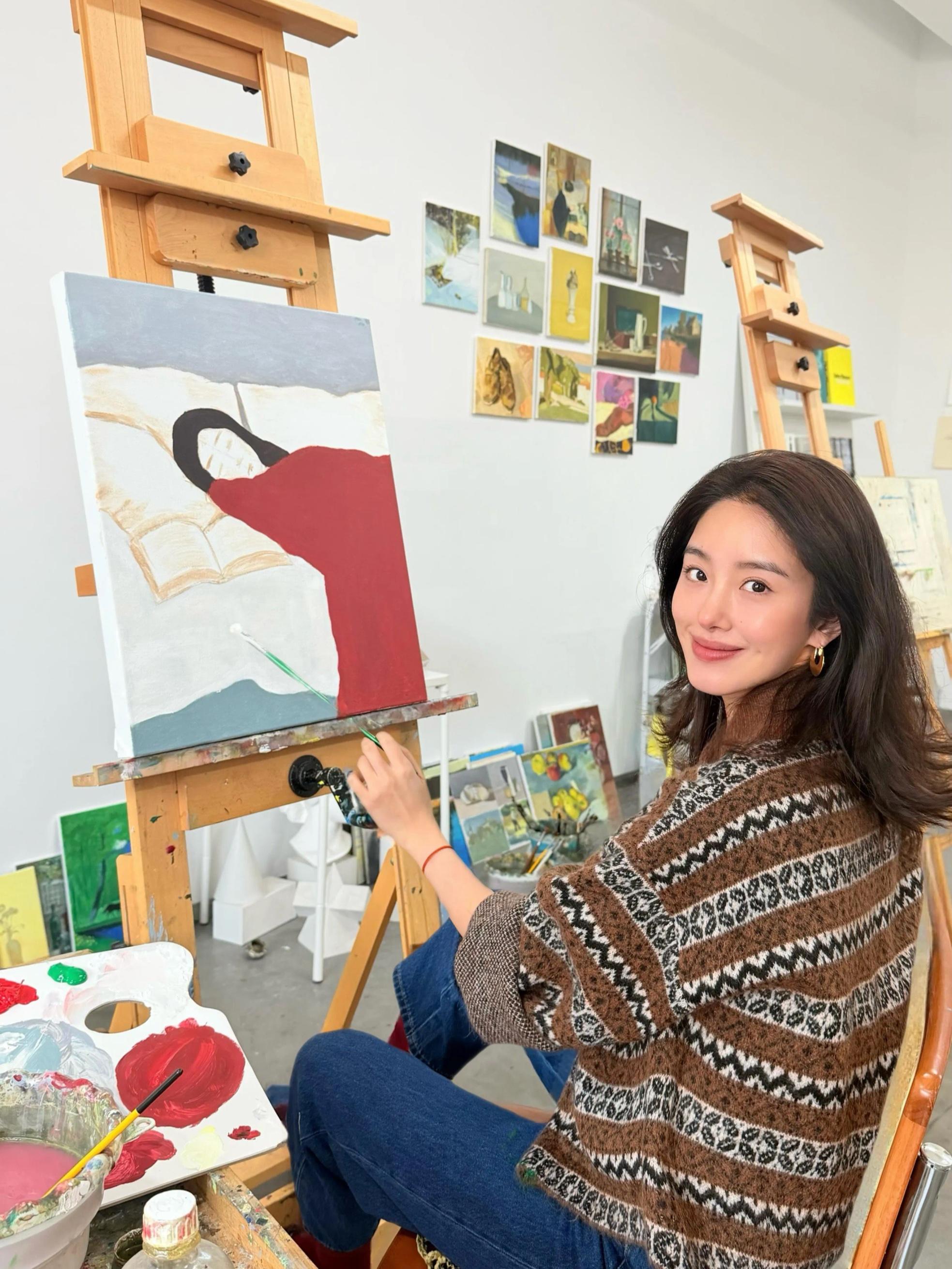 楊採鈺有獨立的畫室,家裏的空間非常大。她的衣着打扮也偏向文藝隨性的風格,低矮的盤發、流暢的半身裙,給人一種從容大氣之美。
