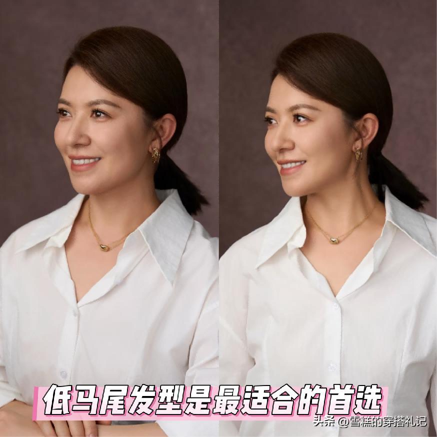 而且這一款髮型的狀態真的是非常適合各位方圓臉以及圓臉的女性來進行運用,前者的話則是體現的更加大氣和自然一些,而對於各位圓臉的女性來說,這樣的髮型狀態本身就可以削弱掉圓形臉帶來的幼態感和不成熟的感覺。那麼對於上了年紀的女性來說低馬尾扎發又不需要任何的技巧,且對於絕大部分的臉型都是非常百搭的。