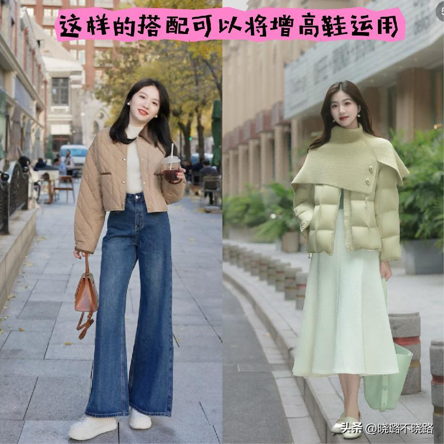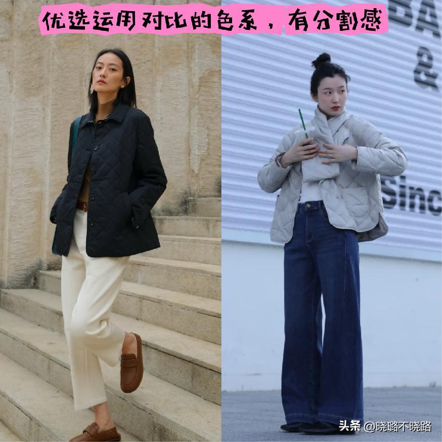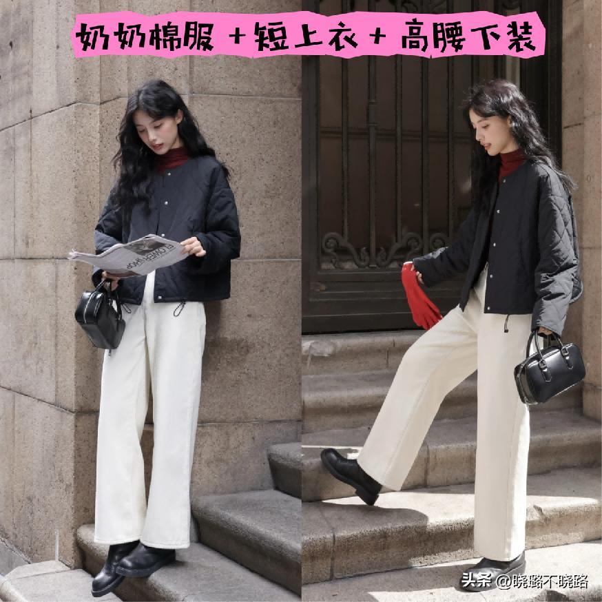 ㈠ 奶奶棉服+下裝搭配,能體現{上短下長}
