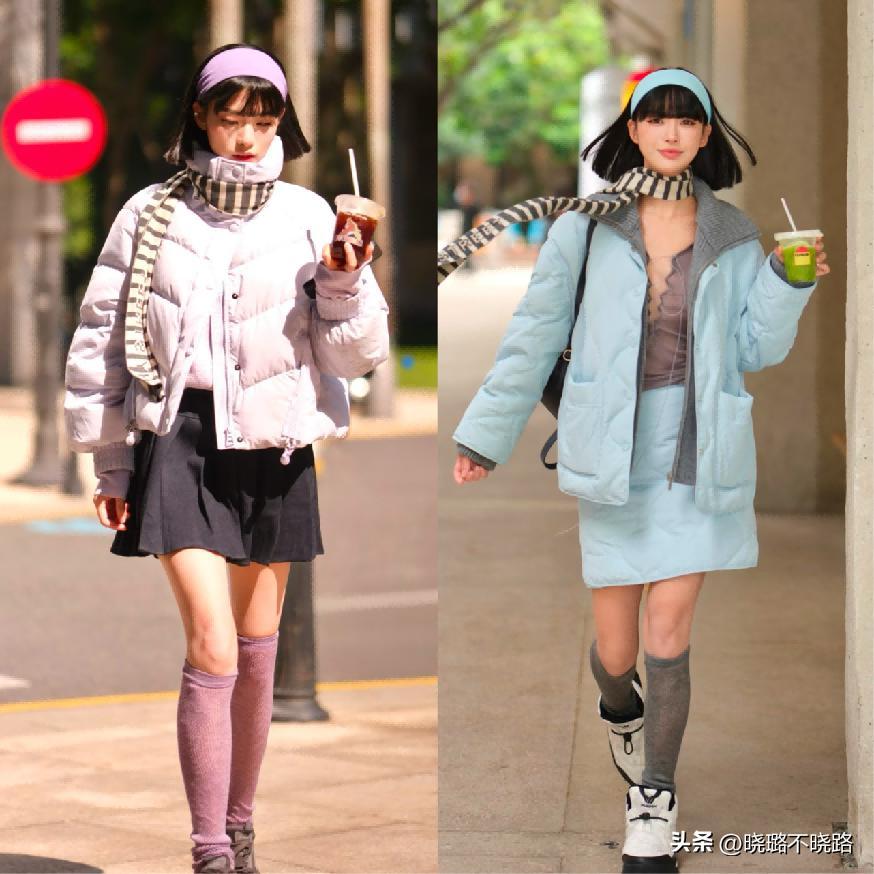 ⑶ 短裙、短褲+奶奶棉服,適合“梨形身材”