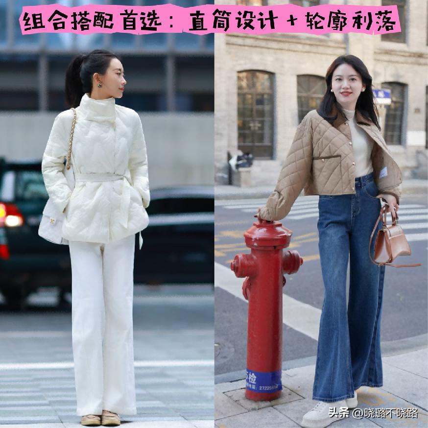 像奶奶棉服這樣的系列,其實更多的時候就推薦大家還是要選擇直筒的設計,尤其是身形微胖以及小贅肉比較多的女性,在這樣的組合搭配當中,就很適合結合搭配煙管直筒設計的長款褲裝和裙裝,以此來優化我們的線條走向以及整整體的穩定度。