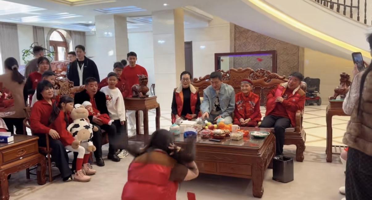 拜年的時候,楊子一直坐在那裏穩如泰山。就是不知道等晚輩給他拜完年之後,他會不會起來給給老母親跪地磕頭拜年,也不知道老母親還能不能給他扔過去紅包。