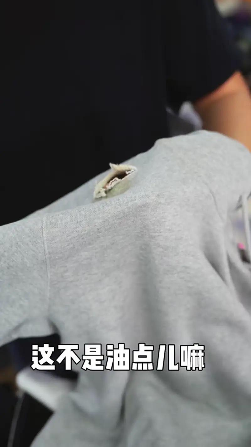 不過這些衣服有可能不是新的,因爲高雲翔隨手拿起來的一件衣服,上面不僅有破洞、還有油點,就是有很明顯的穿着痕跡。