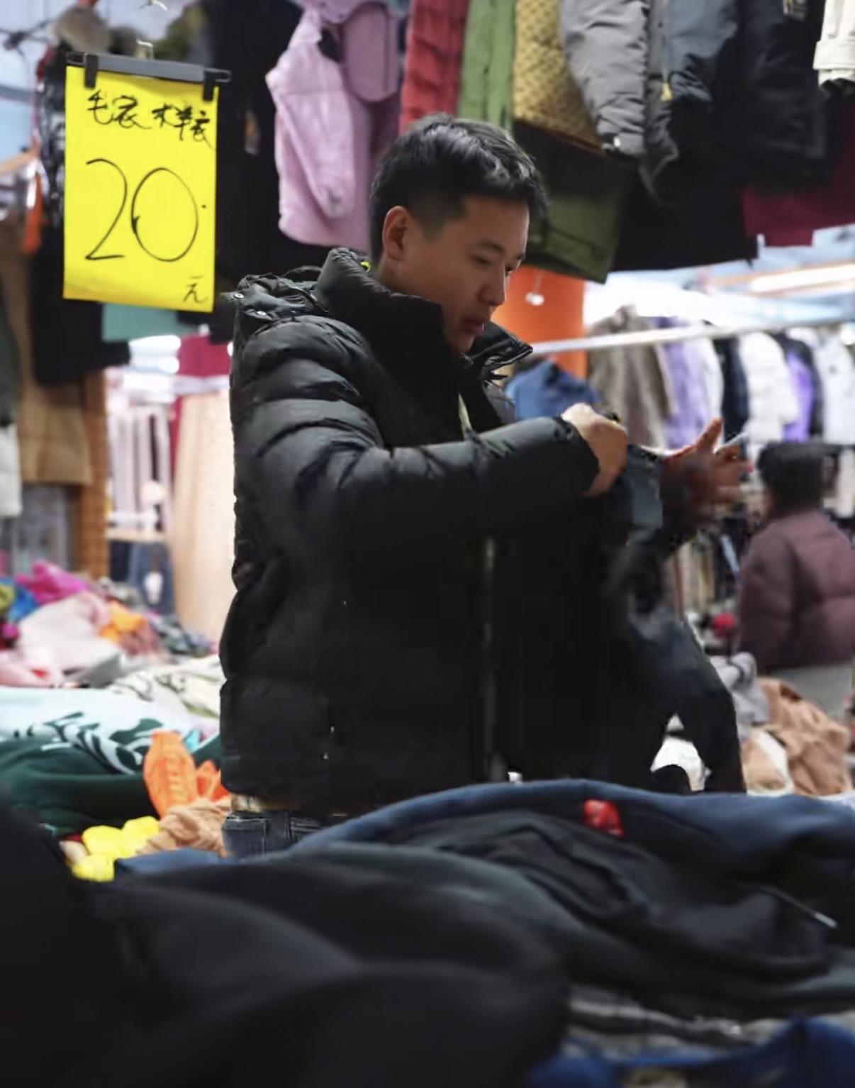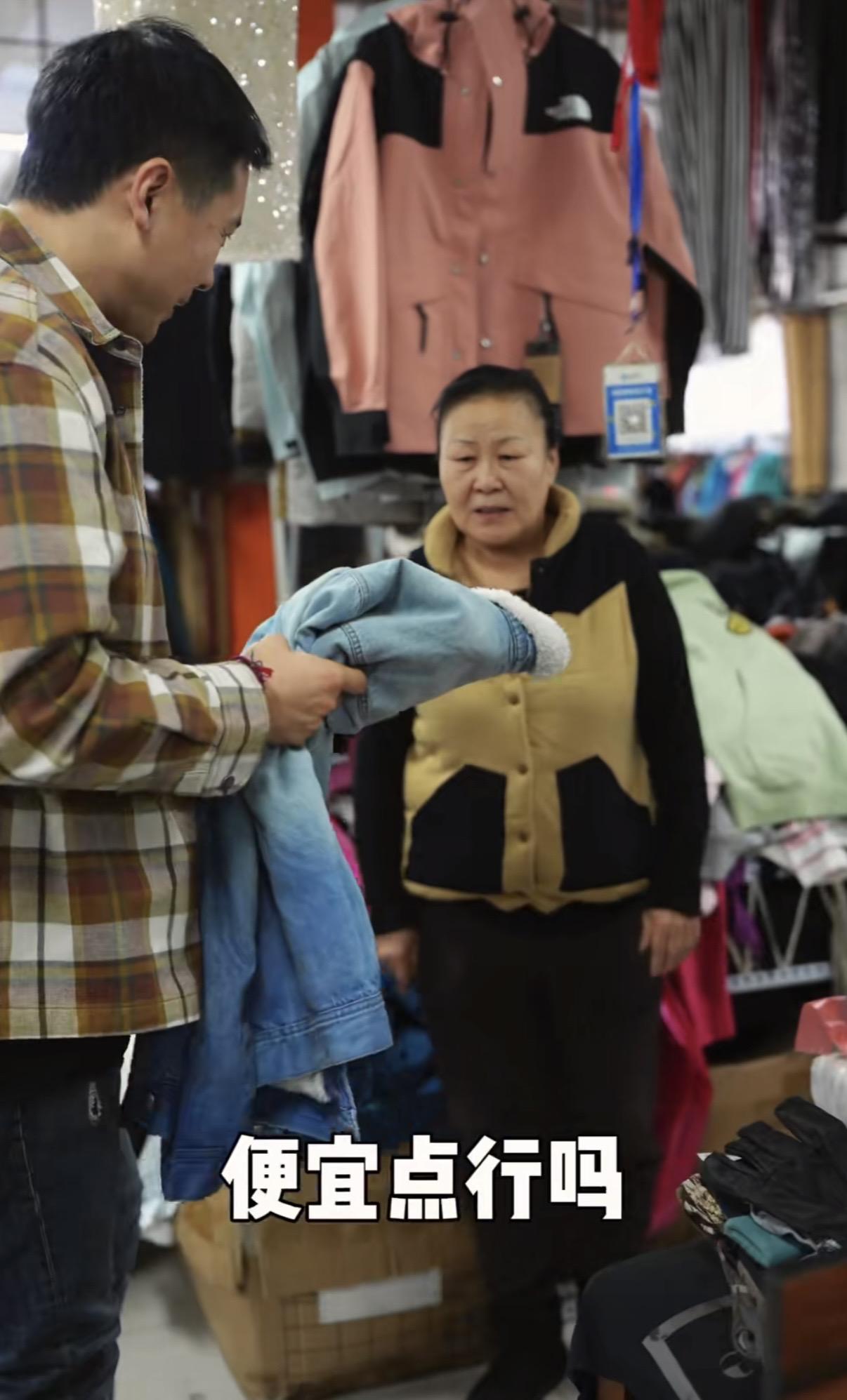 後來高雲翔還看中了一件牛仔外套,是淺藍色的加絨款、這個時候穿就會更保暖一些。這個外套價格相對貴一些,標價是45元。不過高雲翔還是跟老闆娘磨了一會,最終40塊錢拿下。