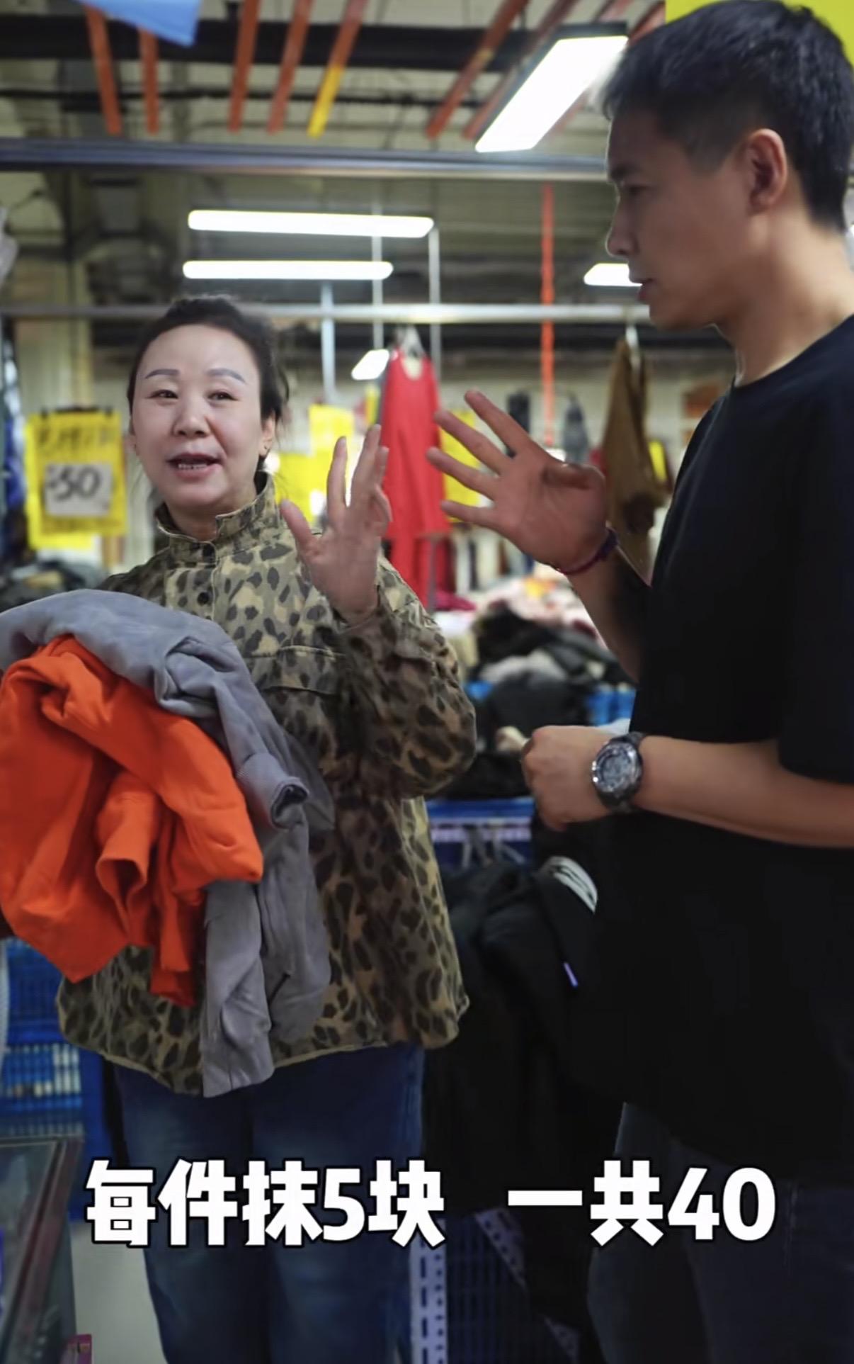 老闆娘的標價是25一元,這已經很便宜了。沒想到高雲翔還找老闆娘砍價,最後一件衣服抹了5元,2件衛衣只要40元。