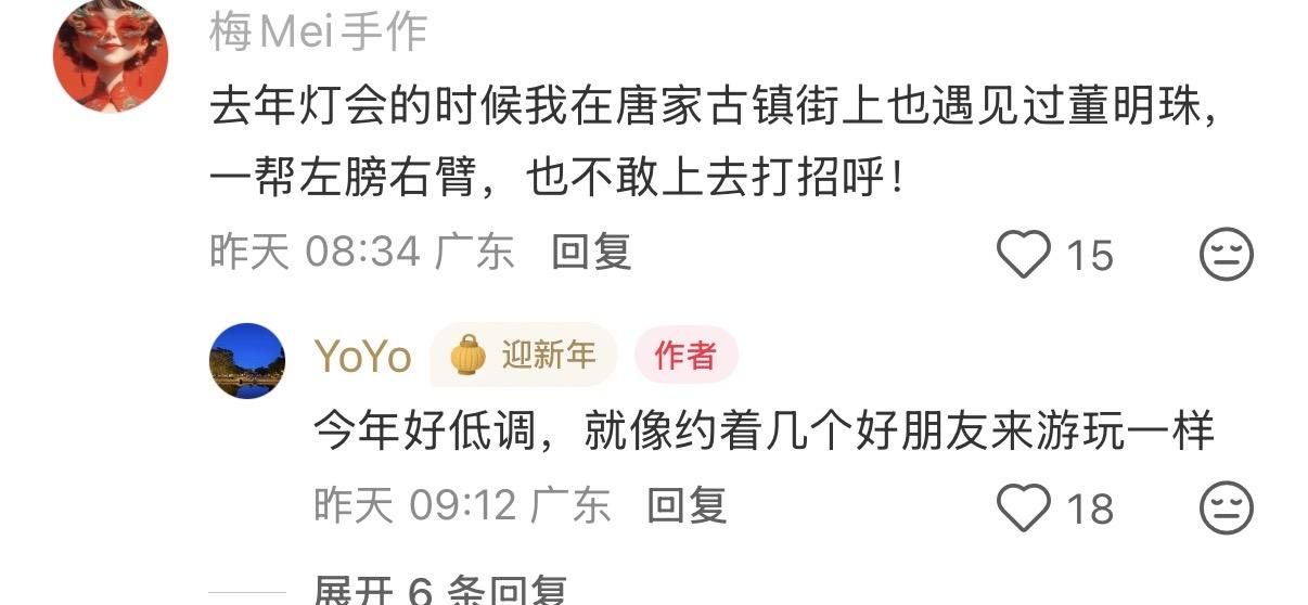 當然也有網友表示去年燈會的時候在唐家古鎮街上也遇見了董明珠,那時候一幫左膀右臂、不敢上前打招呼。