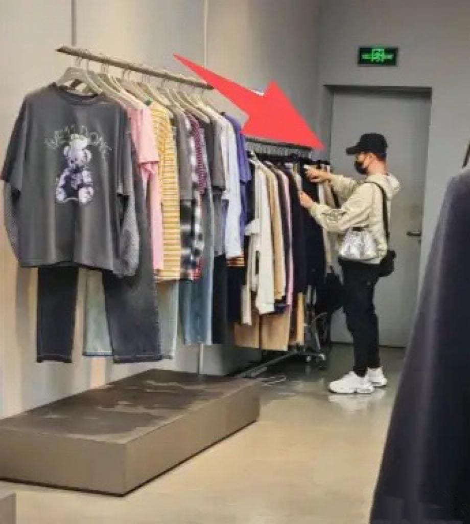 汪峯的肩膀上揹着兩個包,斜挎包是他自己的,那麼銀色單肩包就是森林北的。他站在打折區選衣服,遠遠地看汪峯身材倒是不錯,穿休閒外套配錐形褲,看着不那麼壯實。