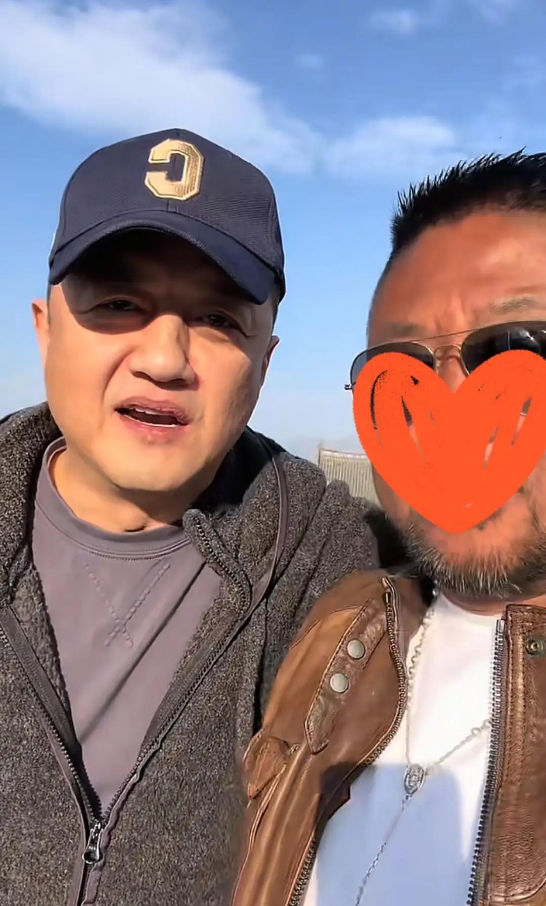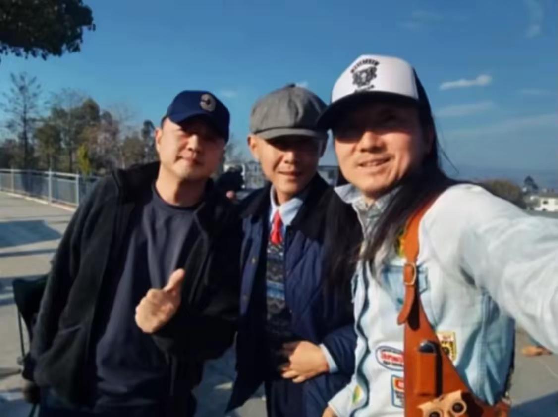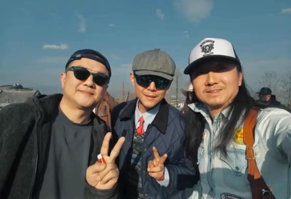 李亞鵬和網紅大冰一起合影,大冰戴着八角帽、穿着一件藏藍色絎縫夾克外套,他的打扮更具文藝範,像是一位流浪藝人。