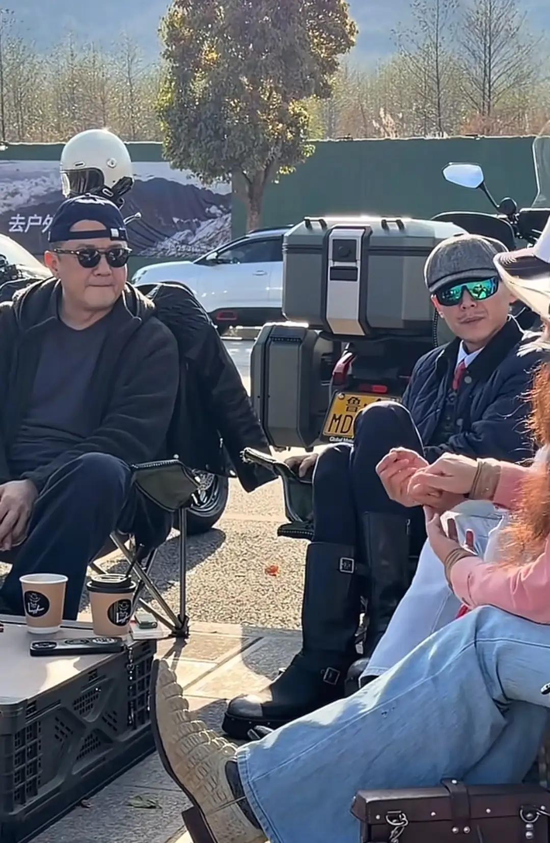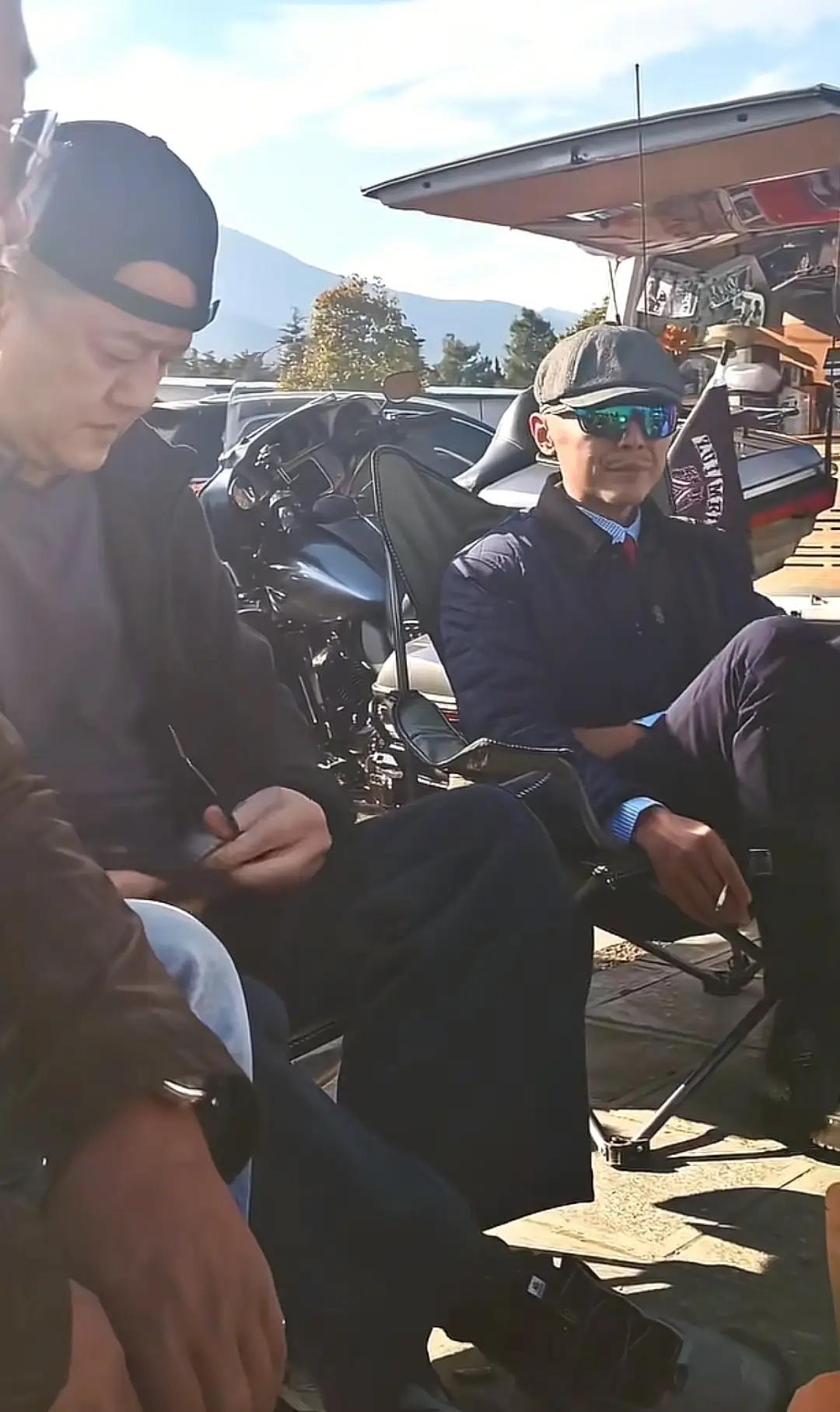 在他們身後有幾輛高排量的機車摩托,他們應該是剛剛結束了騎行。李亞鵬五十多歲了,依然熱愛激情與自由。