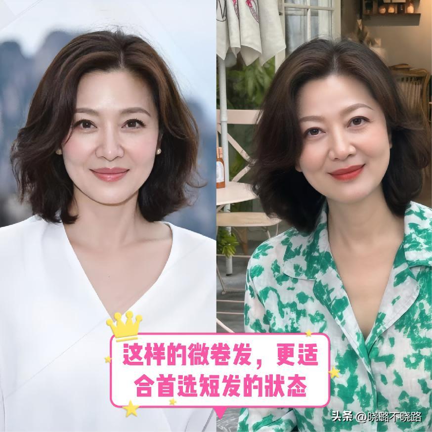 像這種帶有微卷狀態的髮型,其實對於上了年紀的女性而言,更加適合運用於選擇短款的款式,也就是在下頜骨,又或者是肩部以上的位置是最好的,既能夠包裹住整個輪廓走向的穩定和流暢感,也比較的大氣自然。