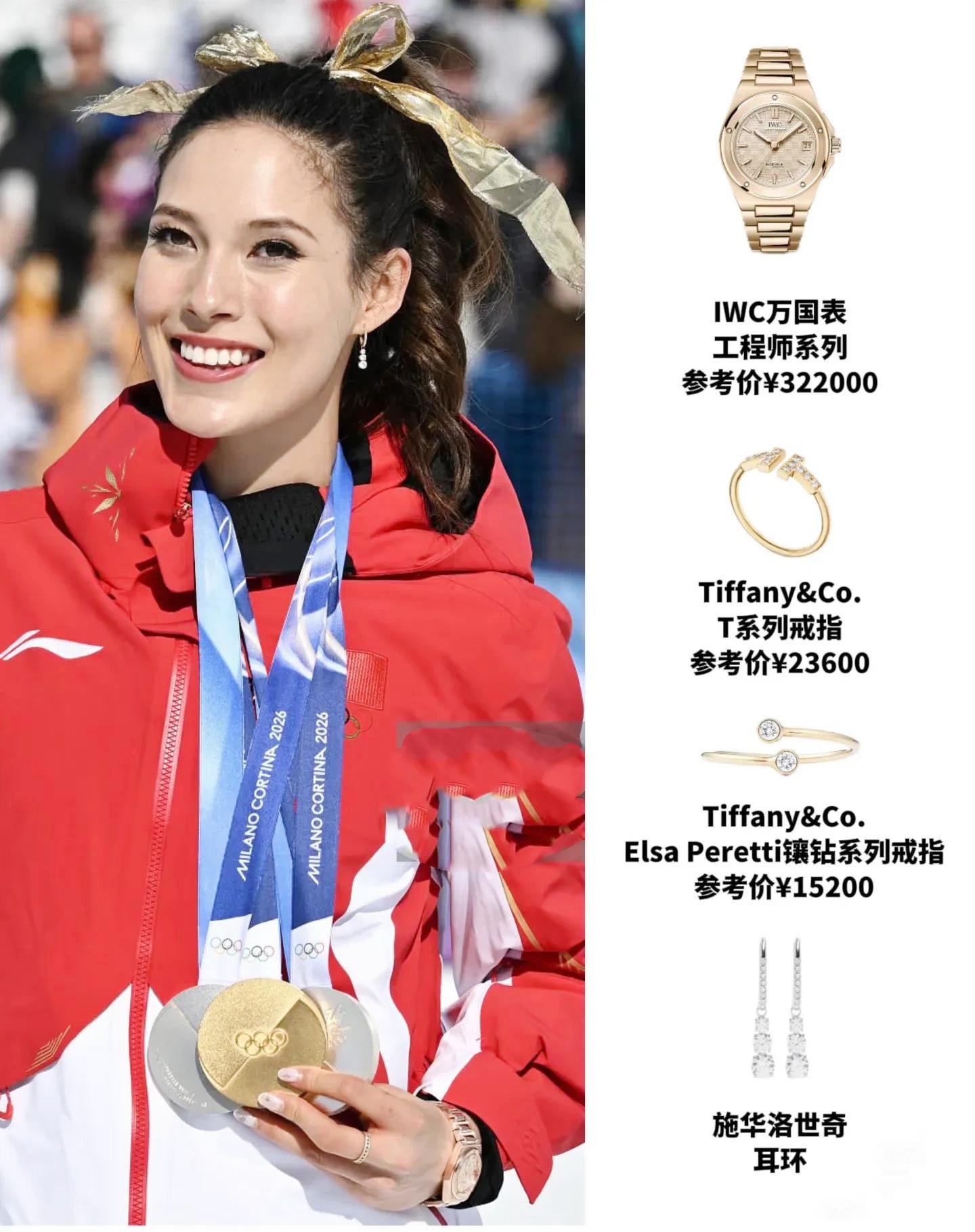 谷愛凌的很多Tiffant&Co的戒指和配飾,以及施華洛世奇的而定,都是限量版的頂級大牌。