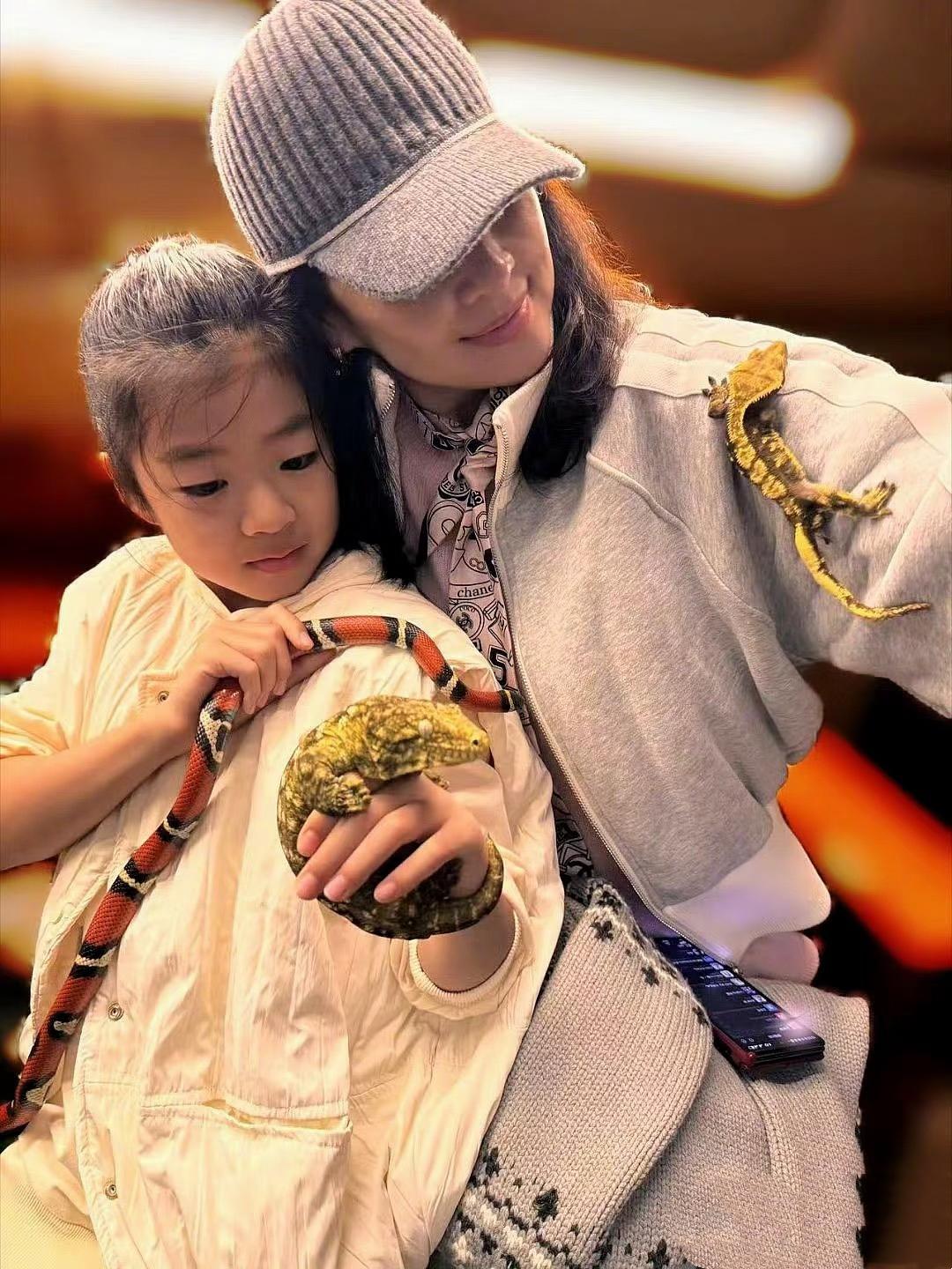 章子怡用心陪伴着兩個孩子,比如醒醒喜歡蜥蜴這種爬行綱動物,章子怡就會帶着她參觀。哪怕心裏有點怕,也會陪着女兒一起。