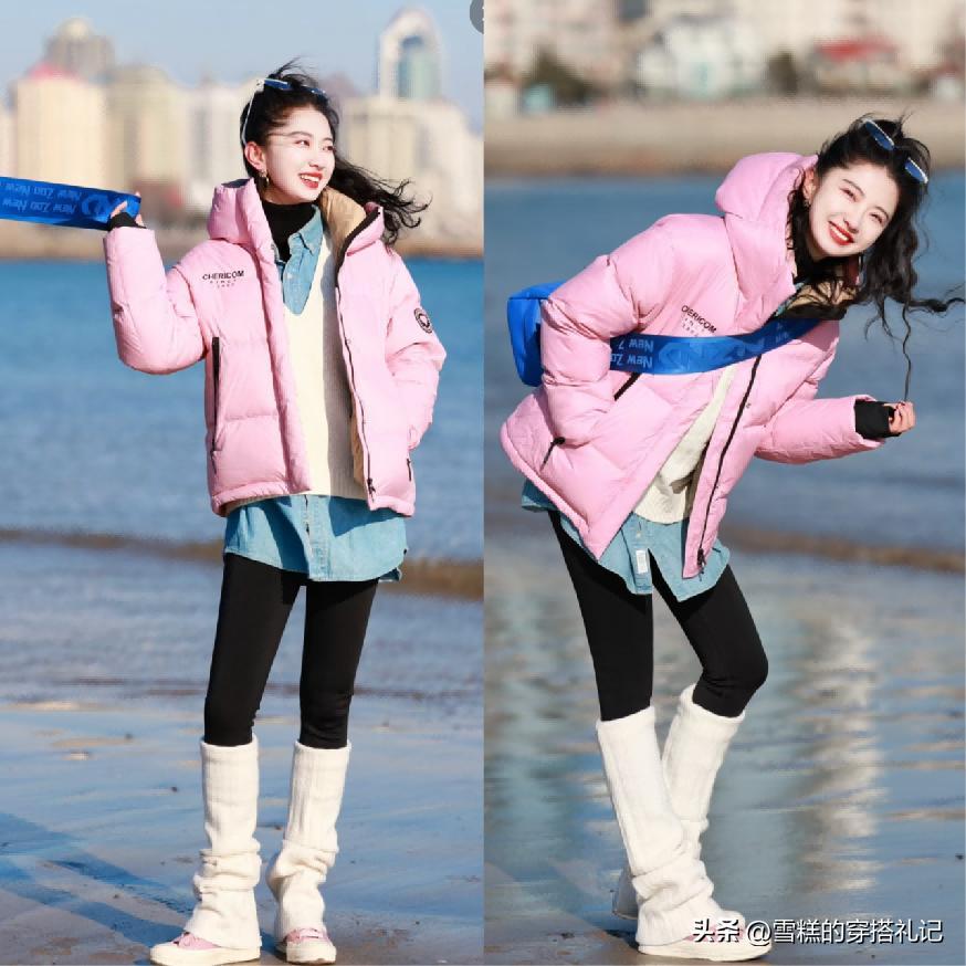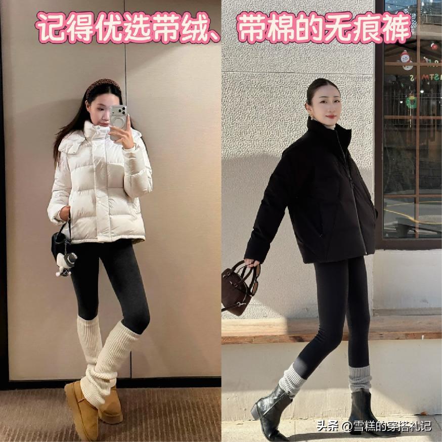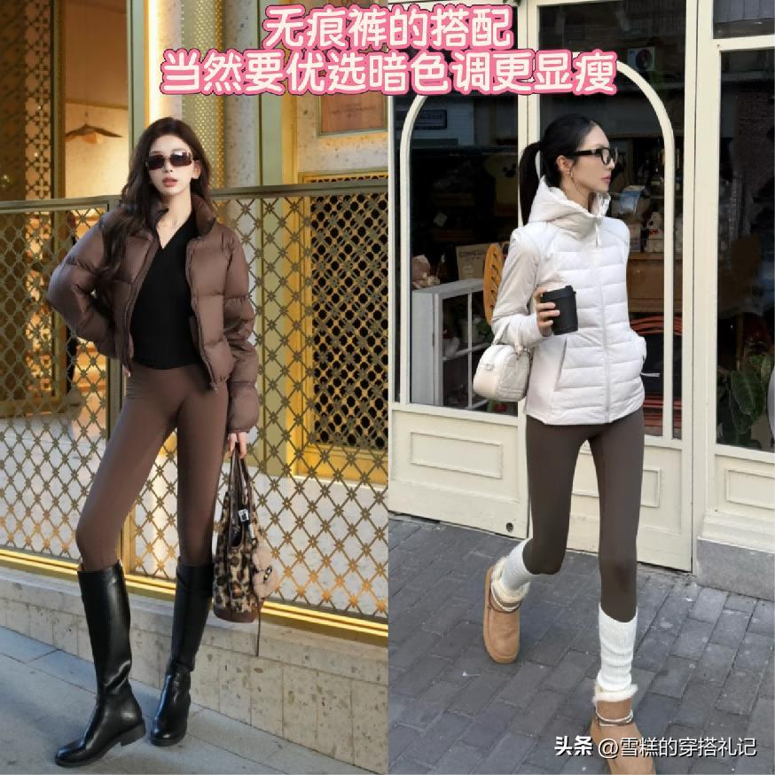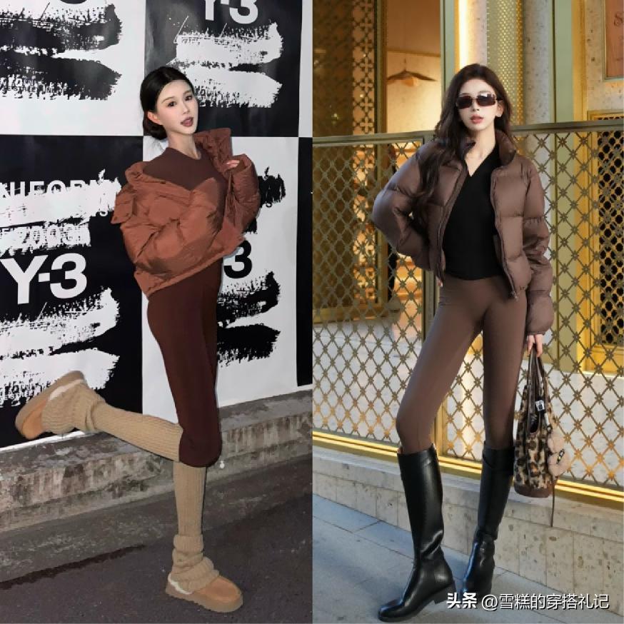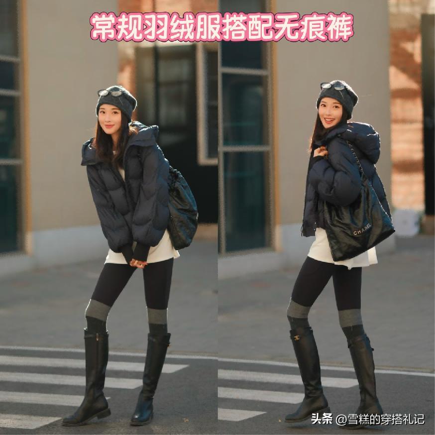 ⑴ 可以搭配短款設計羽絨服,結合高腰無痕褲