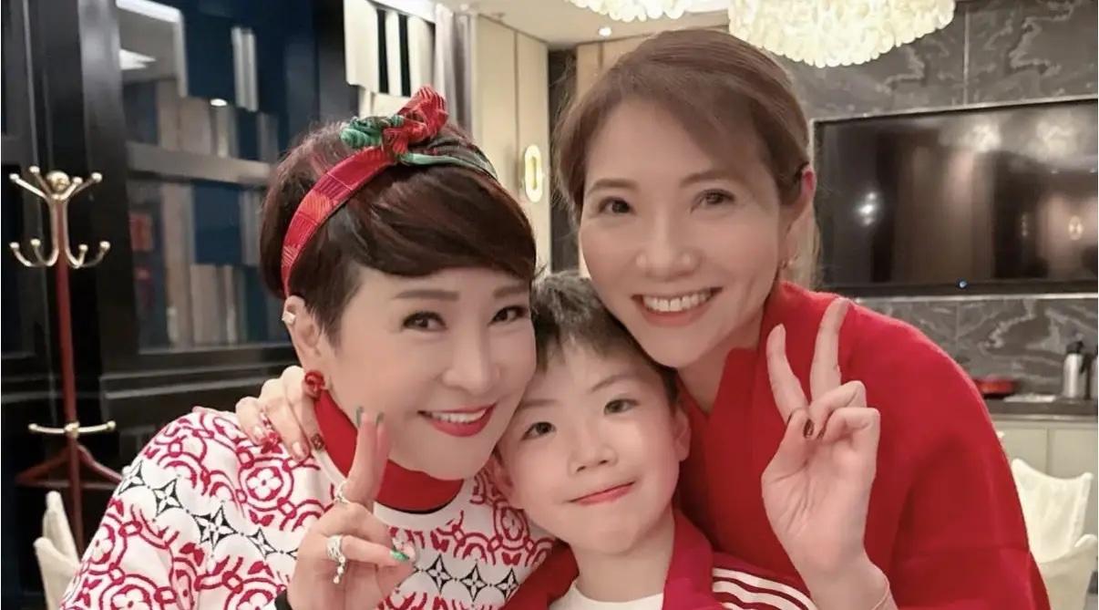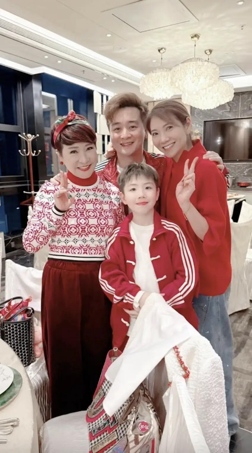 車婉婉帶着兒子來參加聚會,8歲多大兒子長得眉清目秀、非常帥氣。母子倆都穿同色衣服,和狄波拉合影就像祖孫三代,真喜慶。