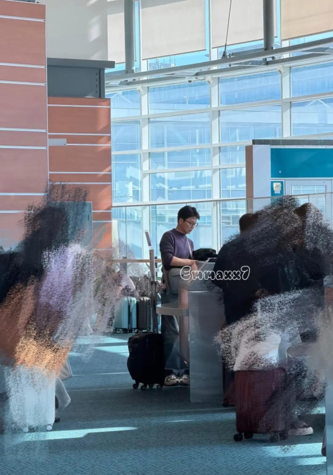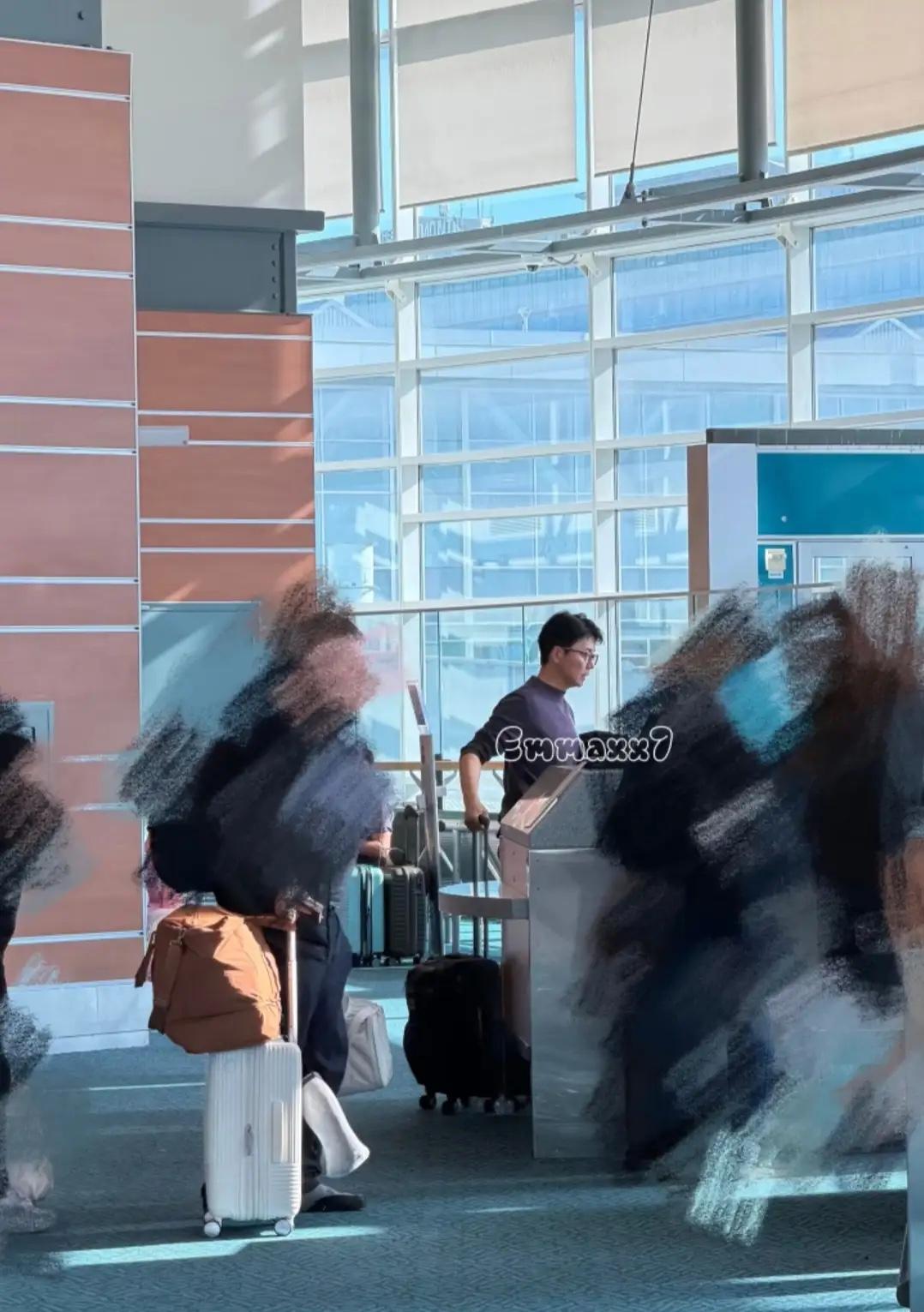 在他手邊,還有一個比較小巧的行李箱。劉奕君應該是從北京分溫哥華,畢竟妻女都在那邊生活,春節期間一家人總要團聚。