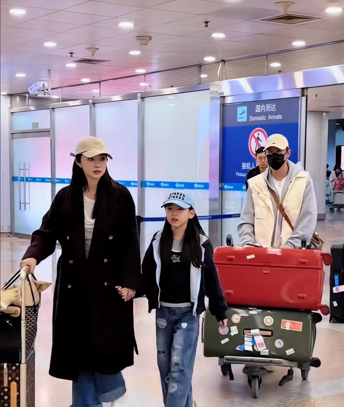 在三亞返回的路上,張維伊負責推着行李箱,董璇負責牽着女兒小酒窩的手。這個畫面也是意外和諧,很幸福很溫馨。