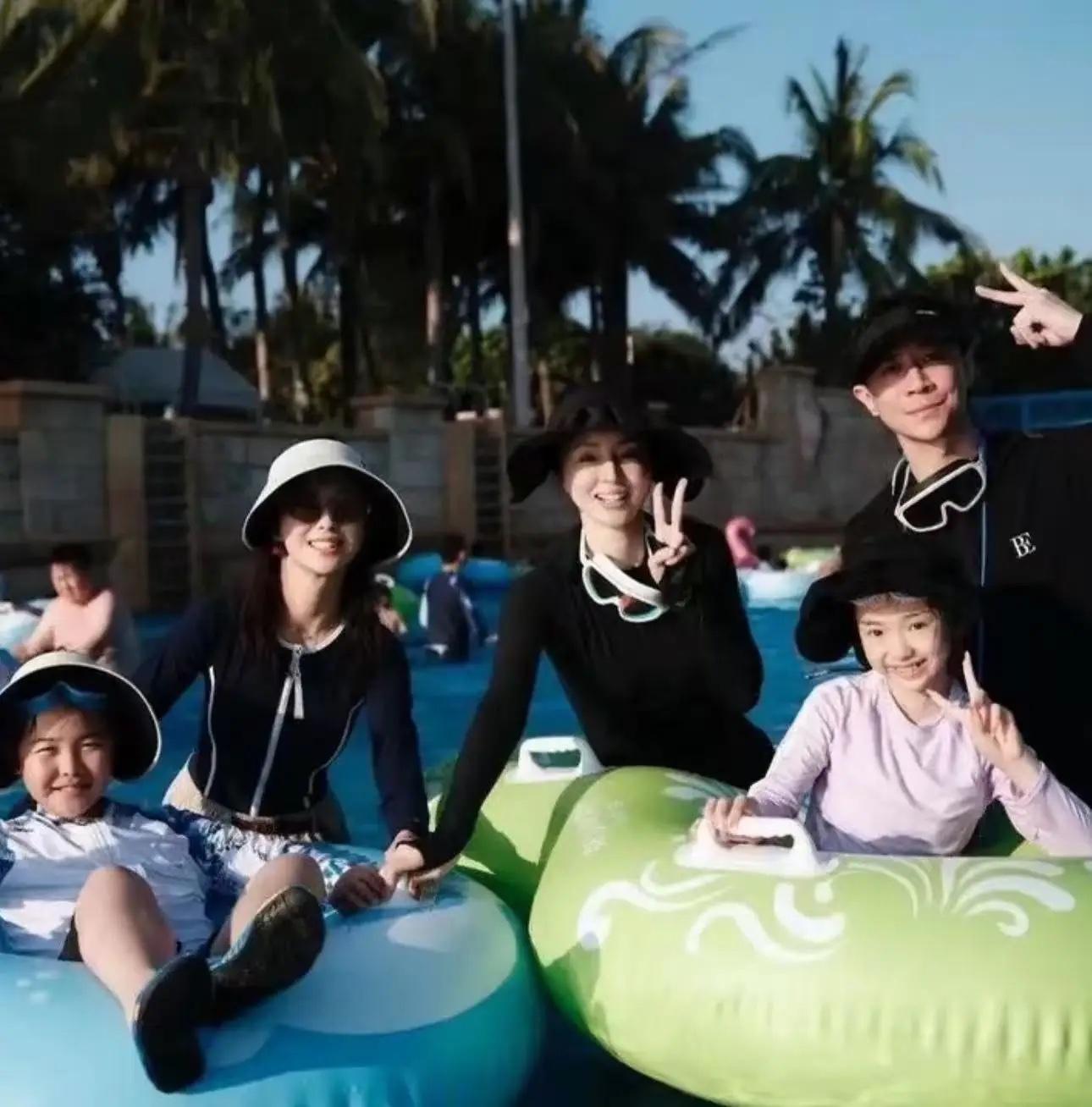 一家三口在沙灘上玩耍,小酒窩會對着張維伊和董璇撒嬌。完全不像重組家庭,更像是普通的一家三口。
